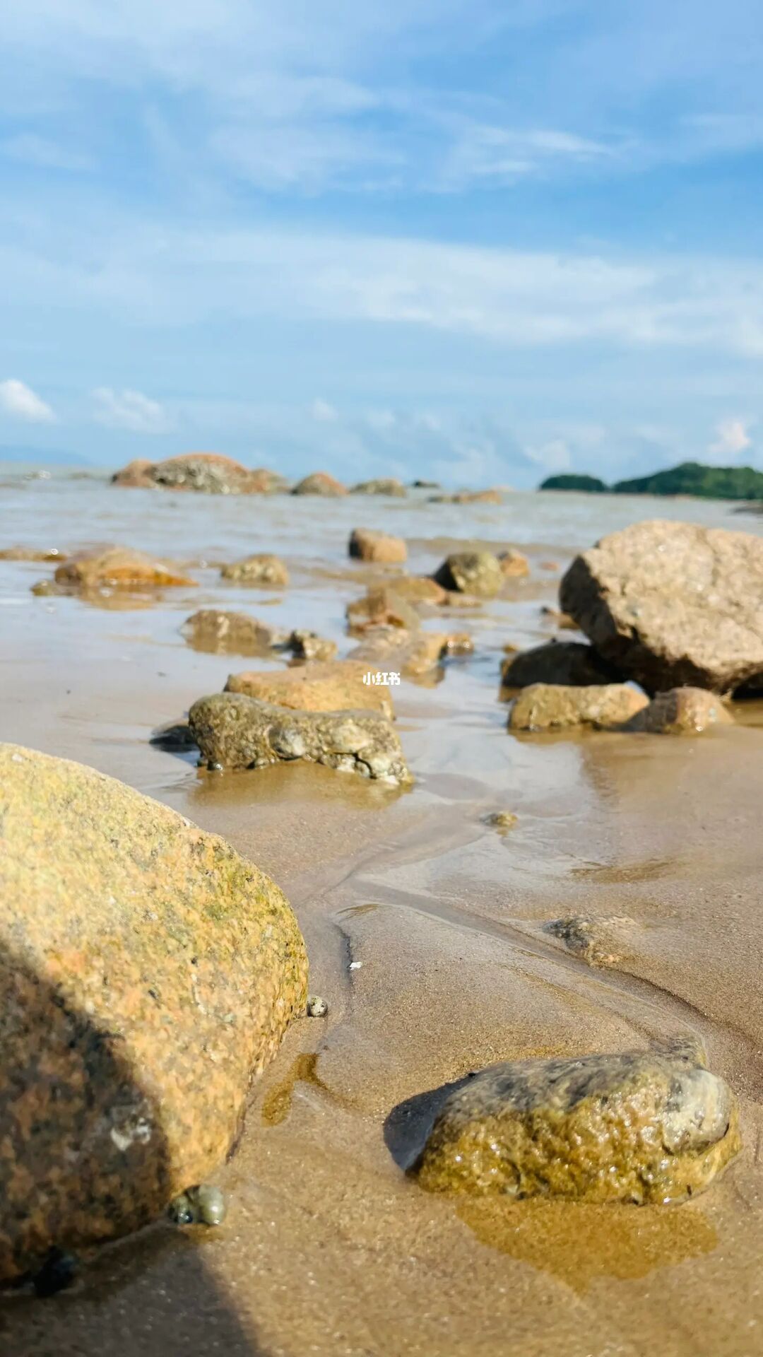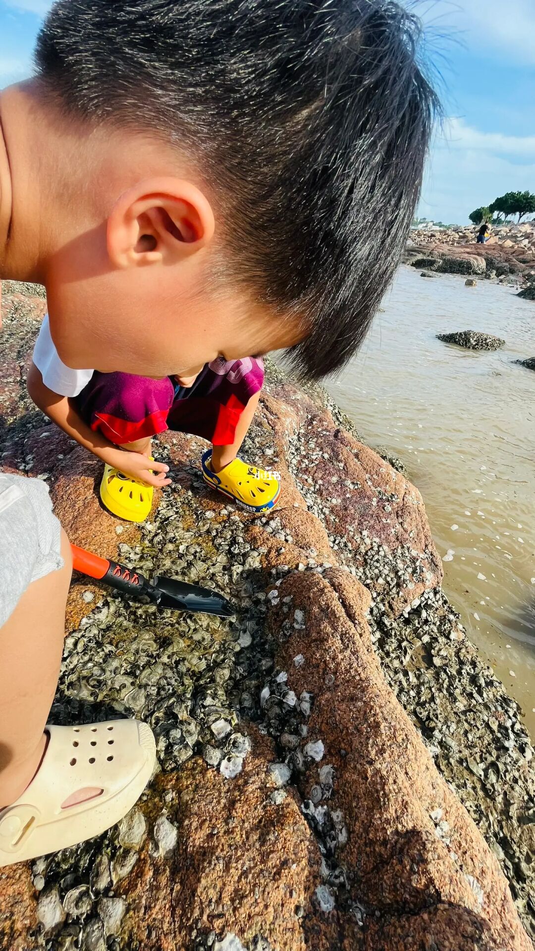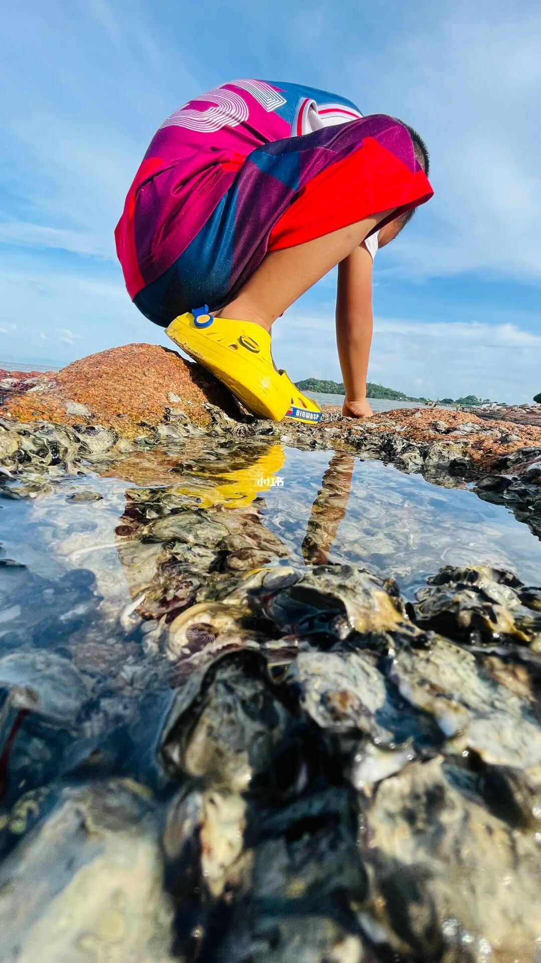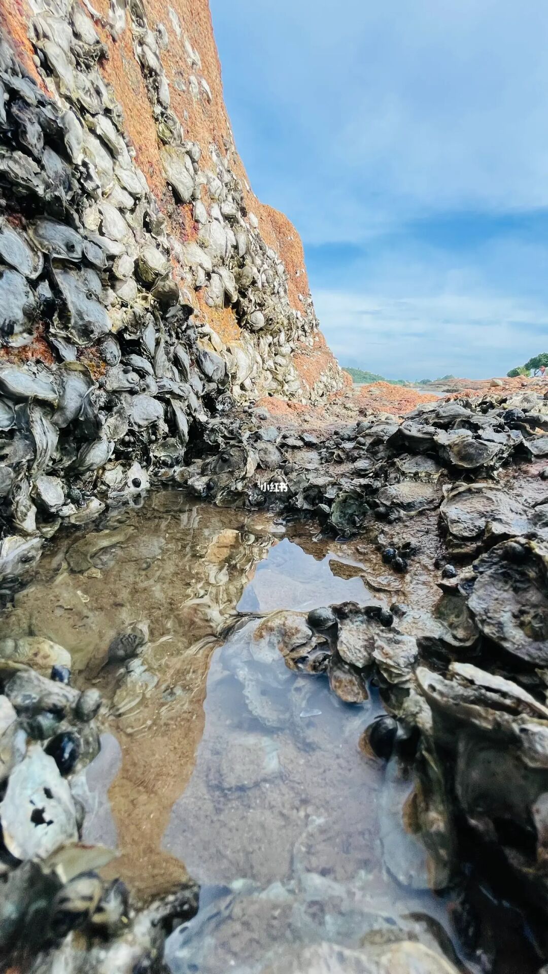 🏖位置在珠海市区,滩涂面向香港大屿山和港珠澳大桥,能很清晰的看得见,重点是附近有停车场和洗手间,非常方便。 🦪这里以前是生蚝养殖地,随处可见的生蚝壳,重点是还有很多生蚝在这里生长,黄昏时分会吸引很多渔民或本地人在赶海挖蚝,螃蟹就更多了。但螃蟹和小鱼虾就不建议带走,因为回家也养不活,还是过瘾后放生比较好。 ⚠️在海边还是要做好安全防护,注意海浪,一定要看好小朋友,岩石上的蚝壳也非常锋利。 定位就在最后一张图,如需要咨询精准位置或停车的粉丝可以私信或在评论区留言,我会尽快回复。[doge]