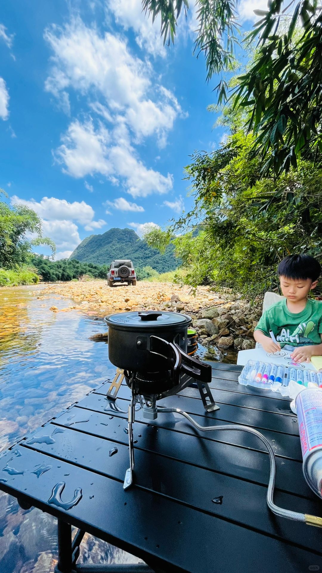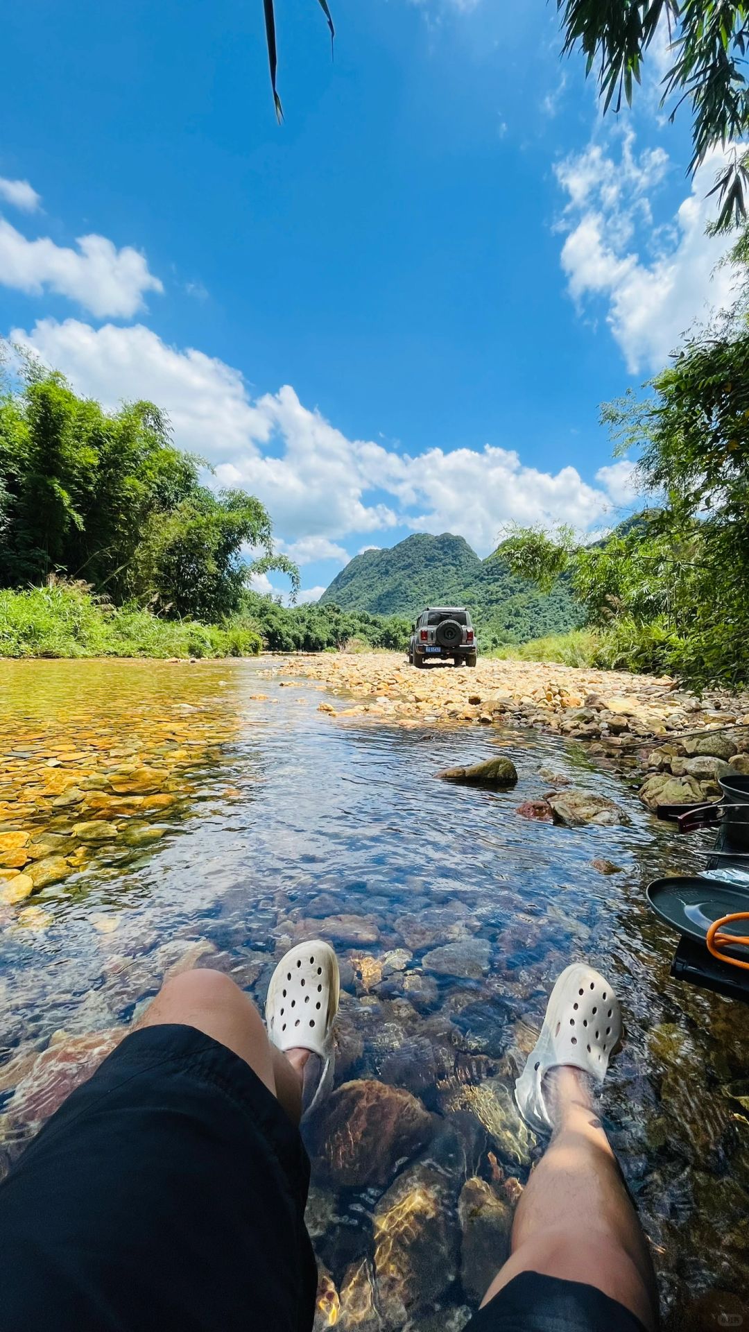 ⛰️周末看着高山流水,冲杯普洱,独自享受郊外的清静。 🌊清透见底的石滩,水温保持23-25度,水比较浅,人坐在水面泡脚非常舒服,也非常适合带上小孩玩水,带上几张折叠小椅子,小桌子,煮个泡面,可以躺一下午。 🚗车可以开到河边,轿车也能通行。广州出发需要接近2小时,建议在附近住一晚。 ⚠️记得带走所有垃圾,保持河滩环境,三水还是要注意安全。