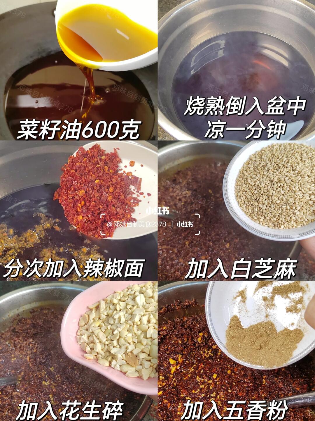 ✅油要烧熟,凉几十秒分次倒入辣椒面。免得炸糊了哈
