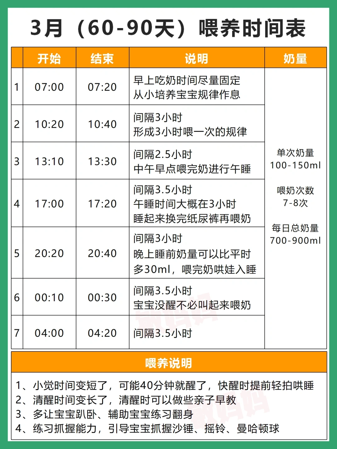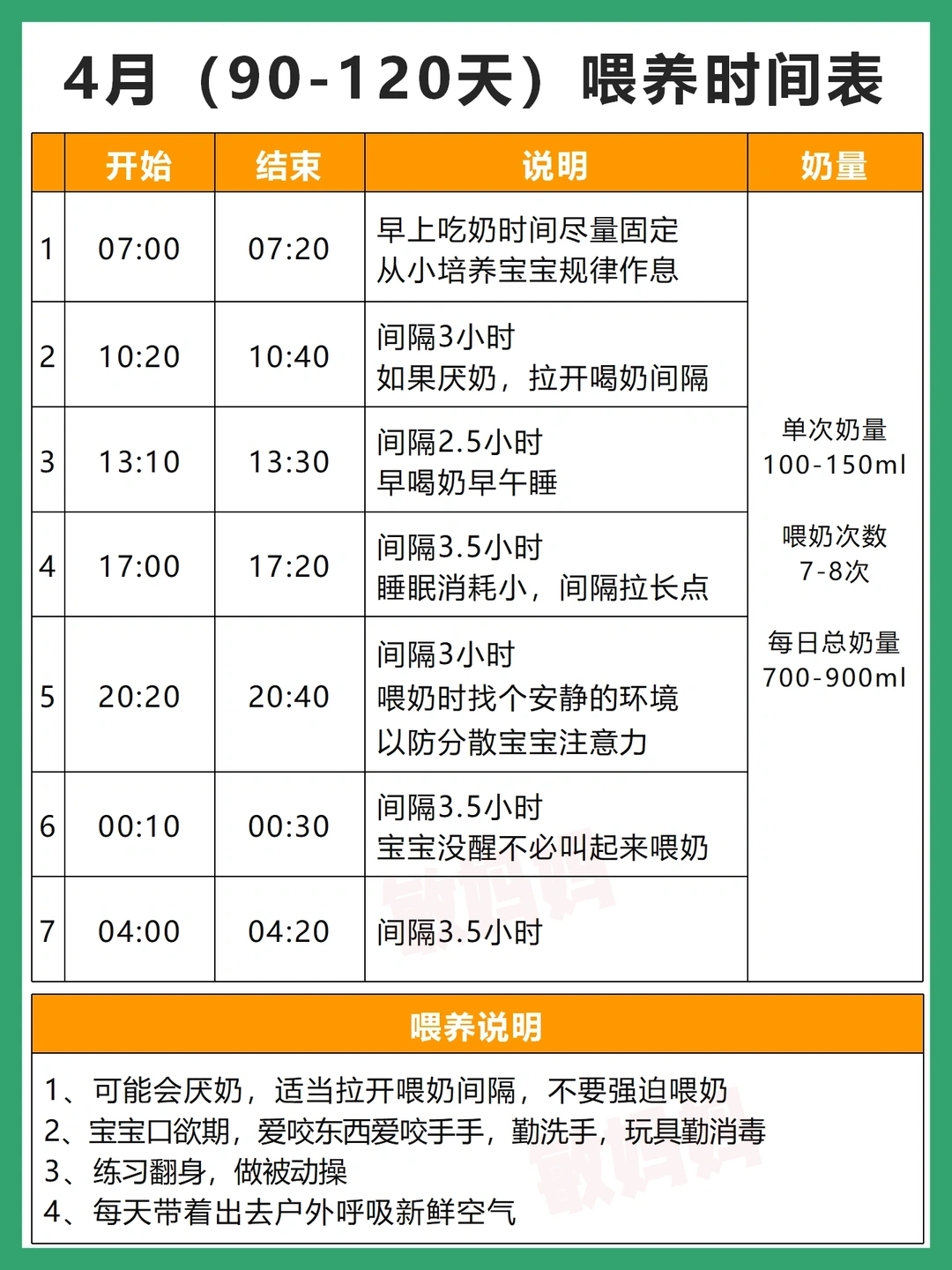 我家宝现在已经1岁了,在每天的喂养摸索中,我也从新手妈妈晋升为白领妈妈,这篇整理了我家宝宝0-6月龄的喂养时间表和奶量,新手爸妈可参考哟~