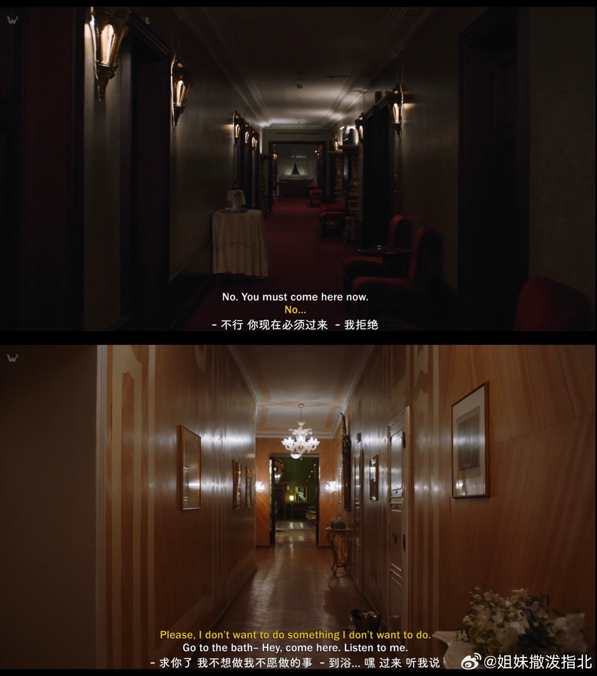 《她说》中放出了韦恩斯坦强迫女性为其提供性服务时的录音,镜头中是一个一个酒店长廊。