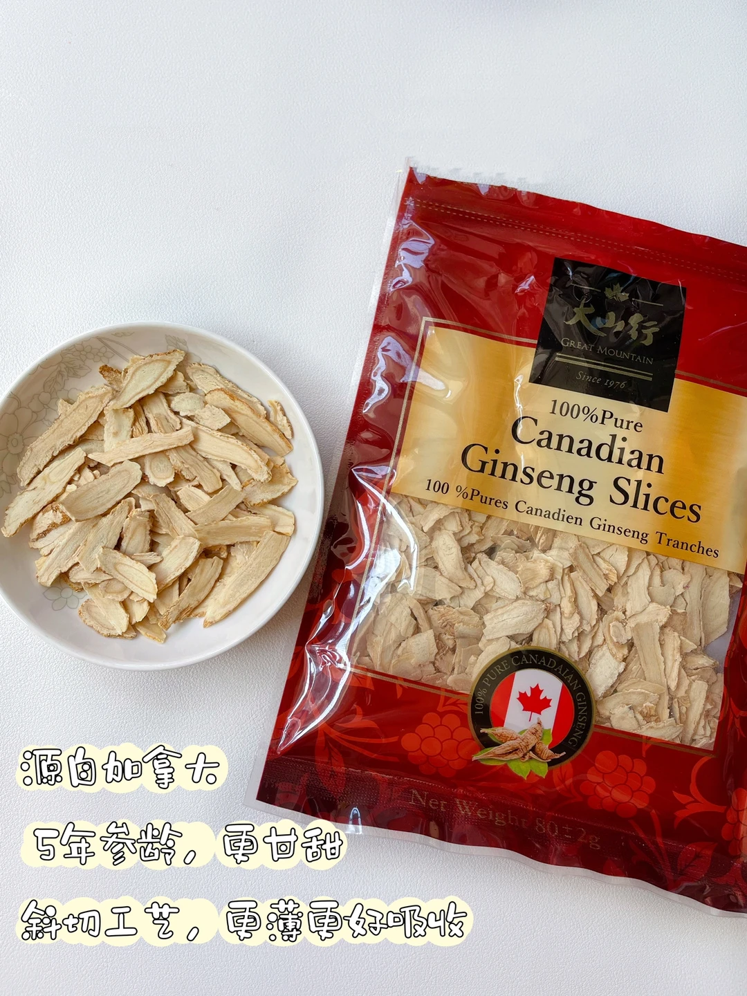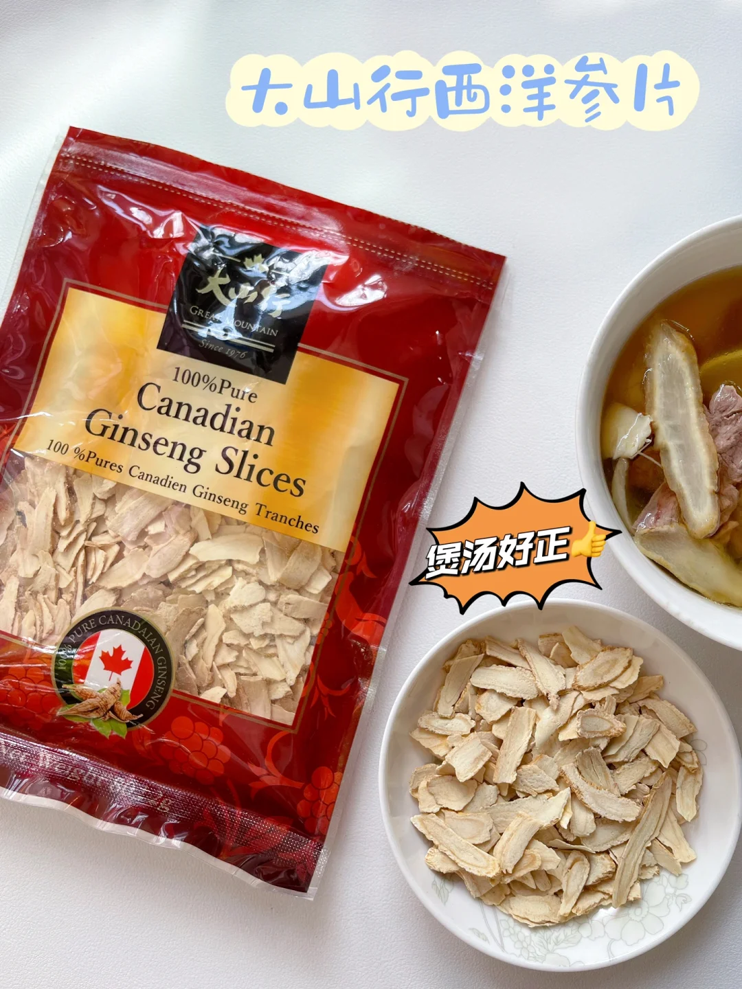 🌟🌟🌟有和我一样气血不足,换季或者天气转冷容易咳嗽的姐妹,建议你们可以备点西洋参在家,泡水煲汤都可以。我家一直常备的这款大山行西洋参片,源自加拿大,只选5年参龄的西洋参,比起其他参片,味道更甘甜👍!采用斜切工艺,切片更薄,更易泡发,更易吸收,大家不妨试试哦~