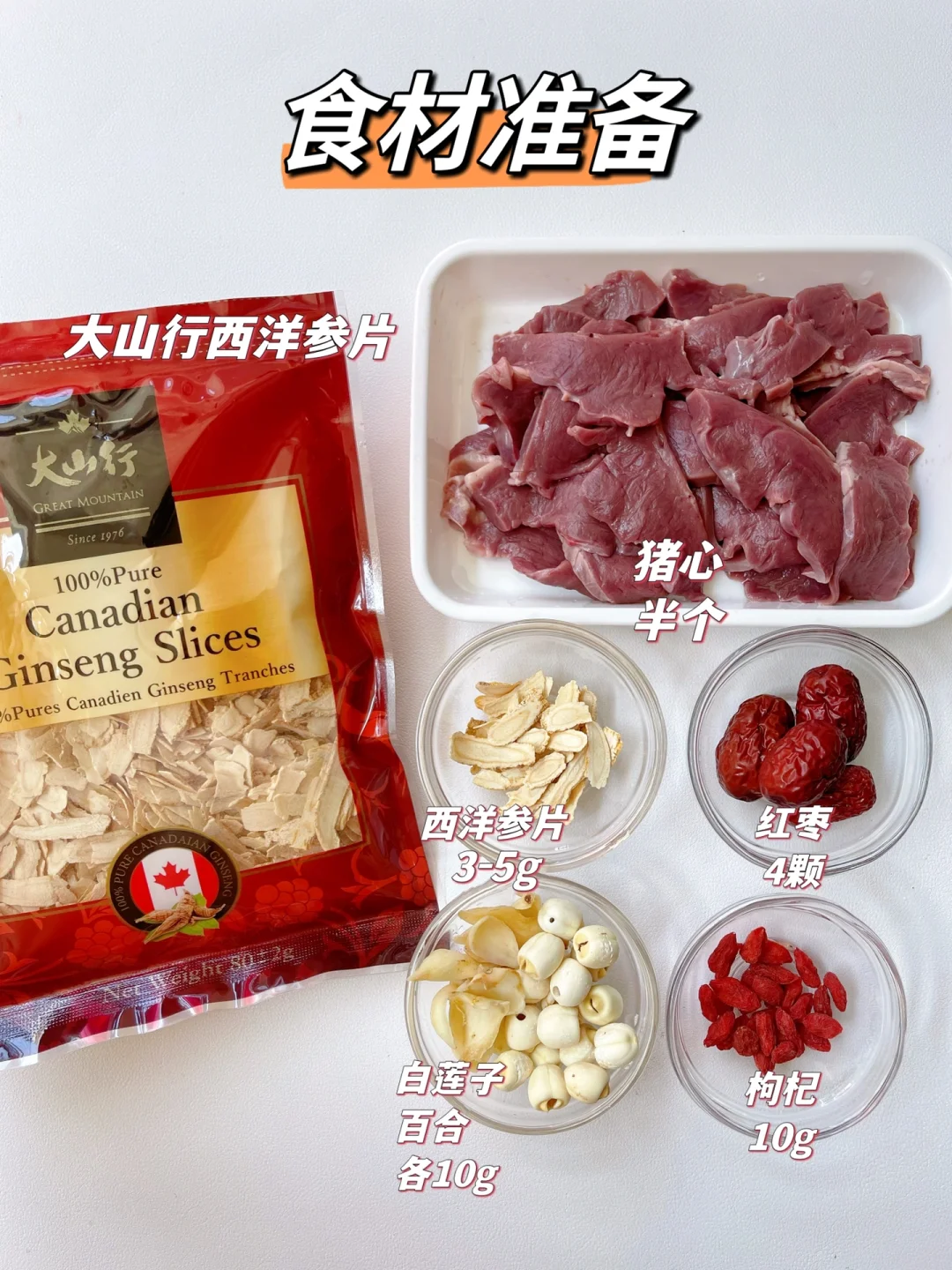 猪心,西洋参,莲子,百合,红枣,枸杞
