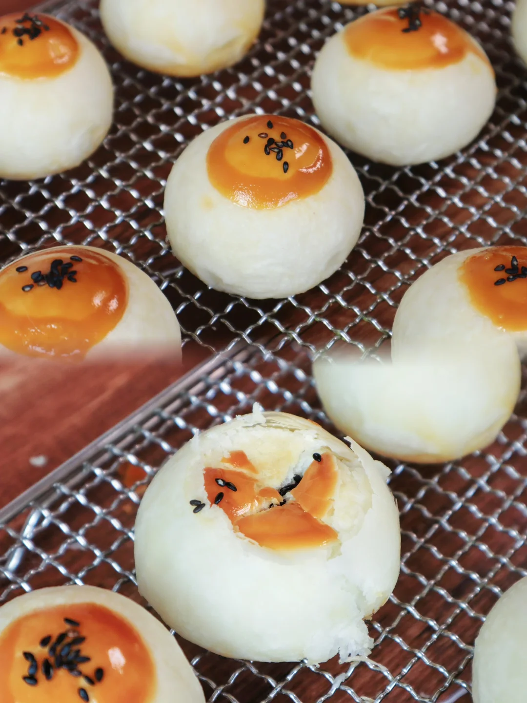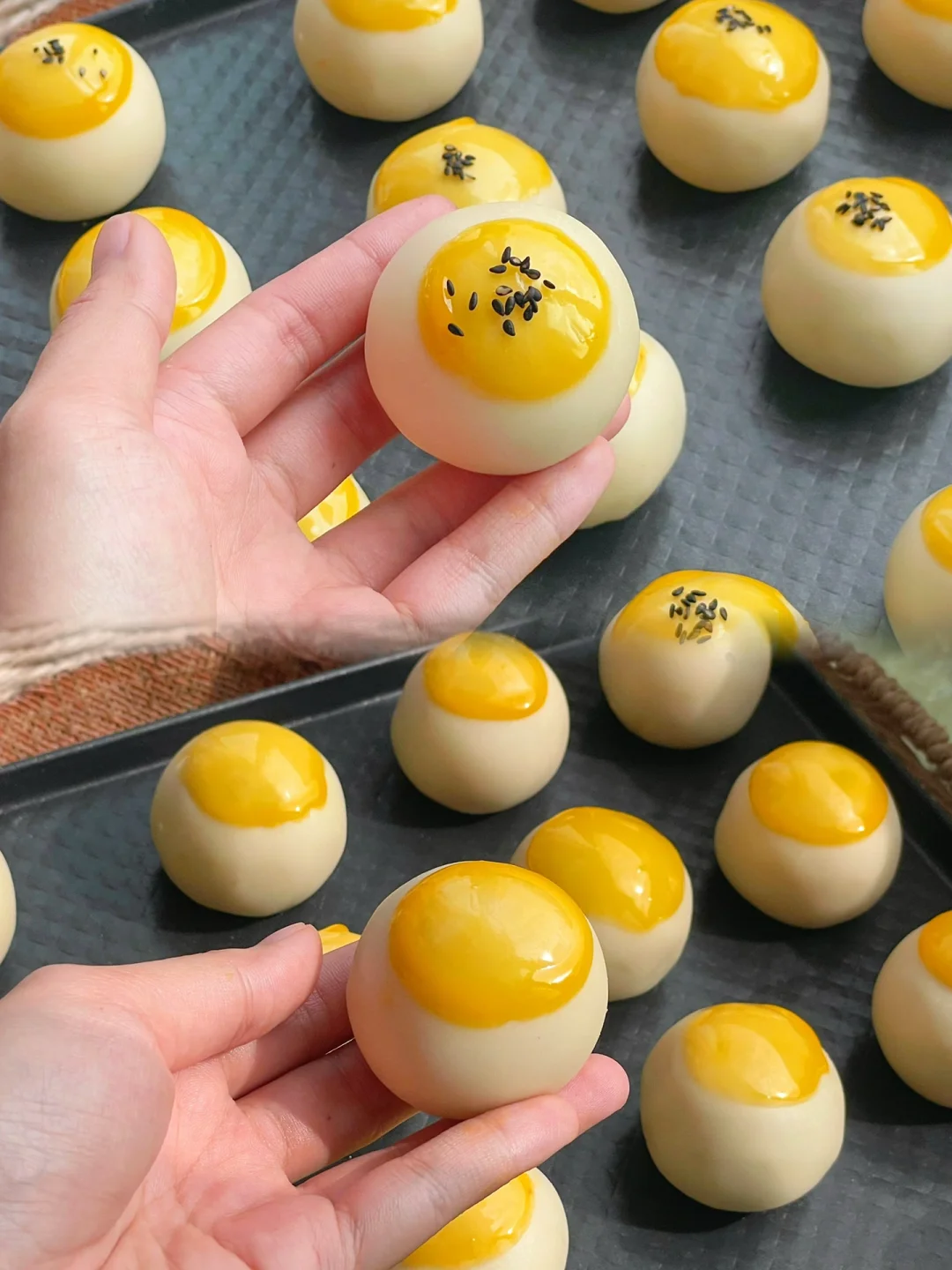 2⃣️蛋黄提前12h室温充分解冻,喷jiu烘烤5分钟