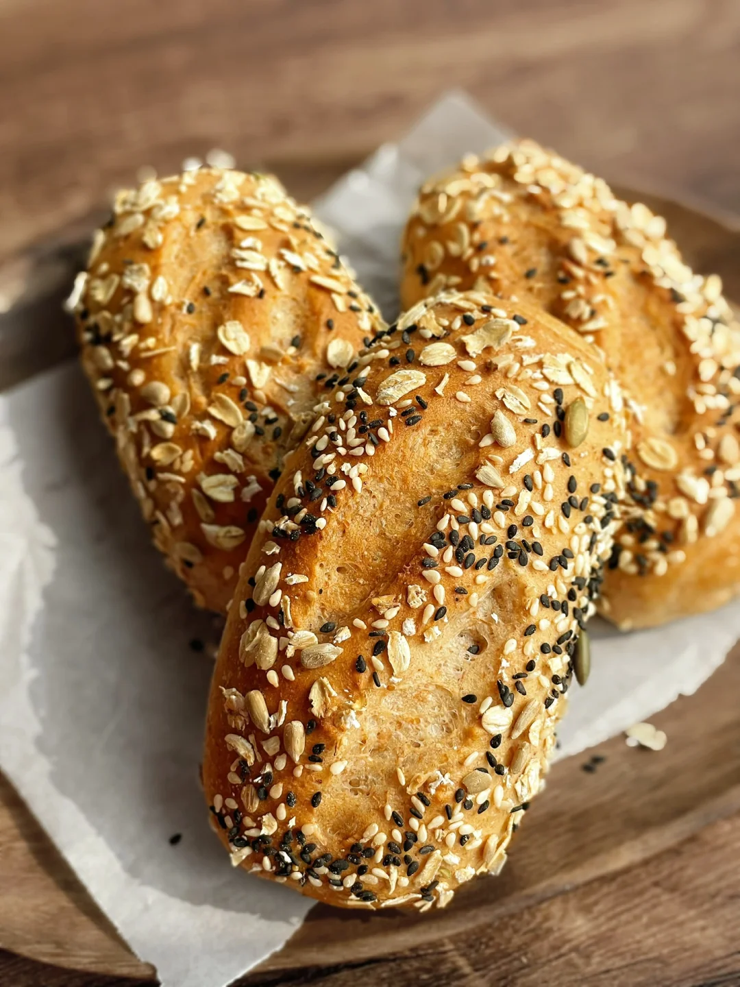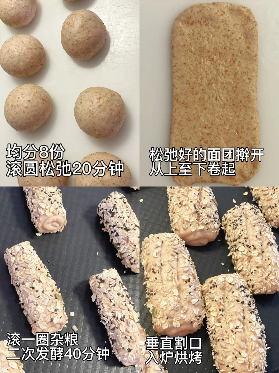 📎配方中全麦粉共250g,我是用了细粒全麦125g➕t150粗粒全麦125g,大家也可以按照个人口味进行拼配