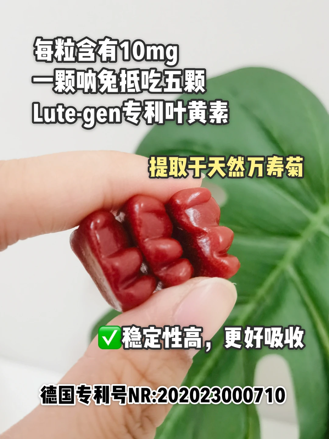 它也是德国品牌,要知道德国对于保健品类的产品认证是真的很严格。每粒软糖含有10mg专利小分子叶黄素,一颗抵普通的5颗,提取于天然万寿菊,小分子更利于吸收哦~