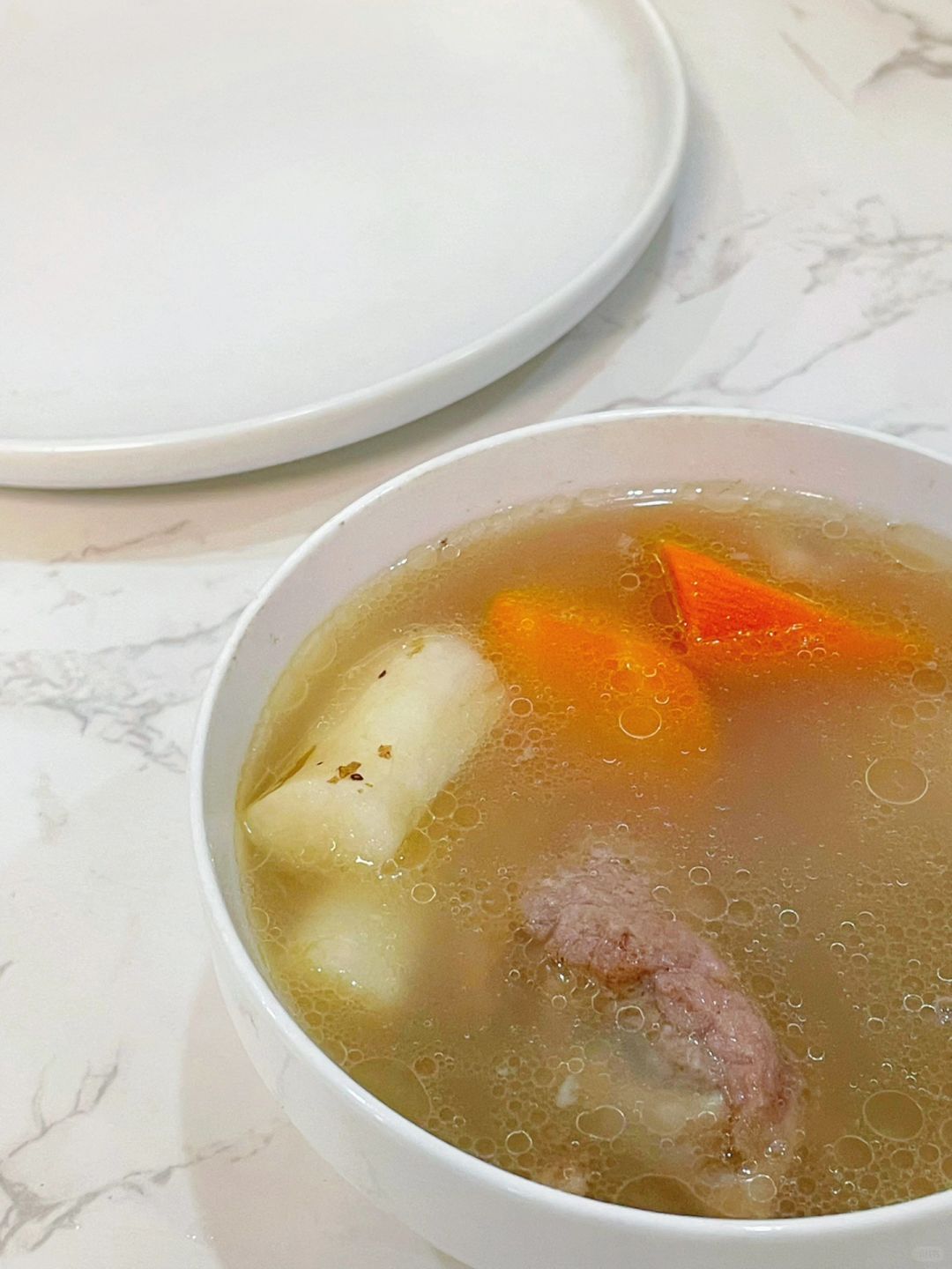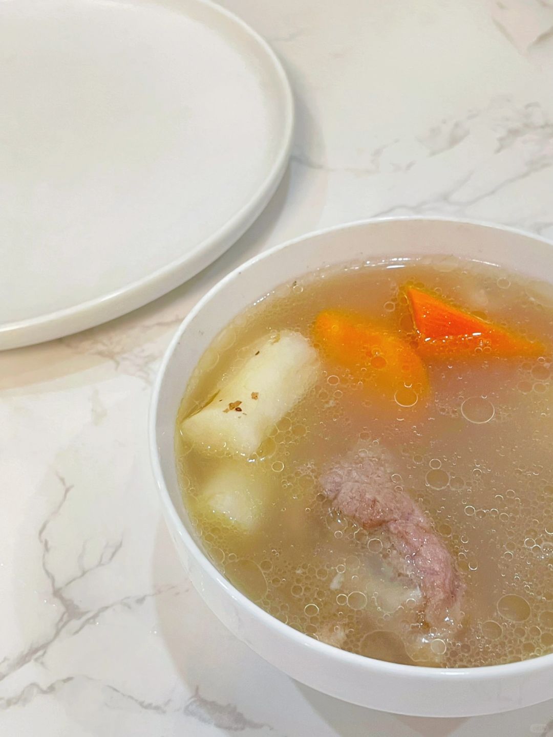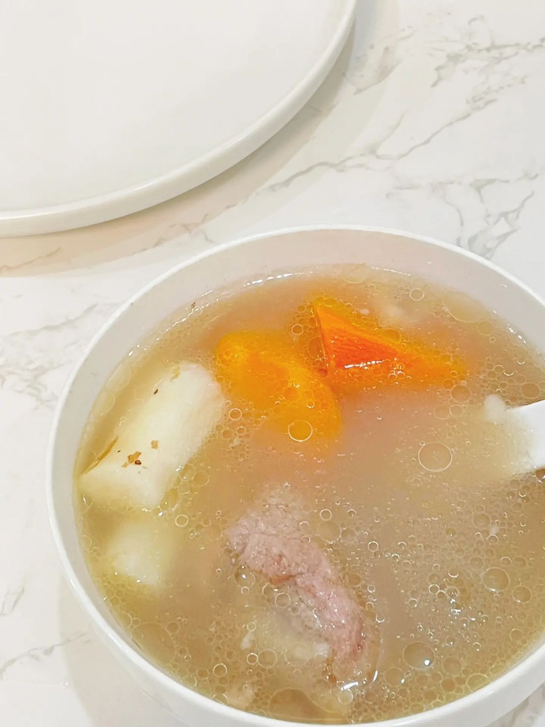 3️⃣煮开之后转中小火煮一个小时,剩余半小时放山药和胡萝卜