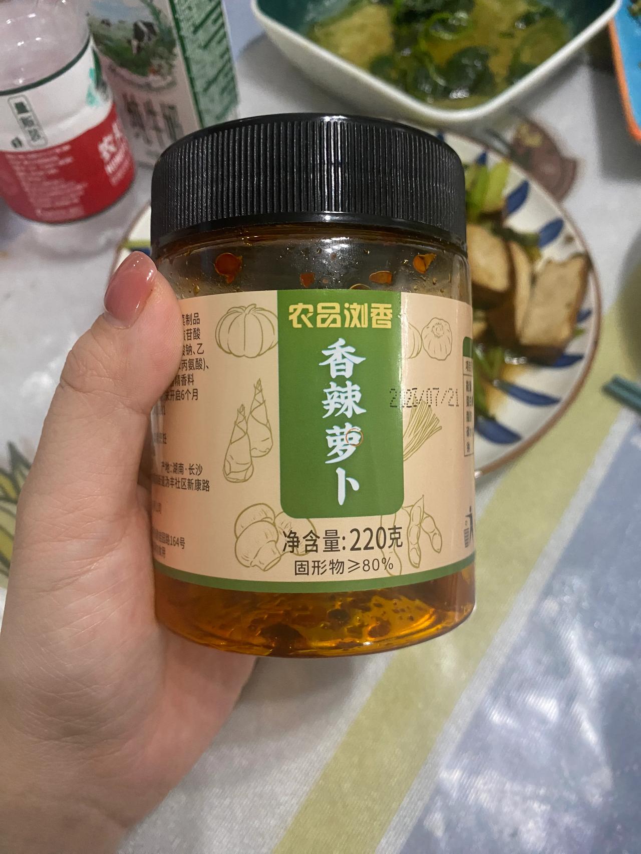 看直播买的萝卜丁,最近智齿发炎不敢吃,偶尔忍不住吃两颗!昨天妹妹休息回来了,一个人把一罐吃完了[捂脸] 真的很好吃,吃起来嘎嘣脆!不是那种甜辣的,很传统的那种萝卜丁,很像我奶奶以前做的那种!当零食吃都可以[爱慕] 好吃的萝卜丁