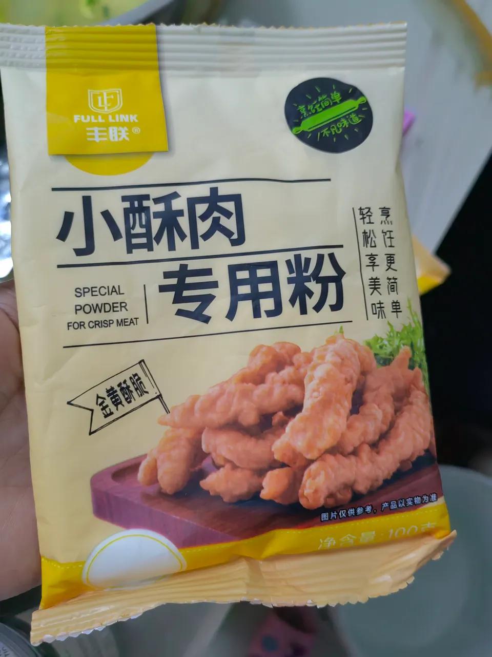 小酥肉专用粉,过年的时候买过一次,做了一大盆小酥肉,太好吃了!又划算,外面店里一份二三十才一点点!这次刷视频看到用小酥肉专用粉炸藕丸子,又心痒痒的下单了[捂脸]9.9到手四袋!很划算[大笑] 小酥肉专用粉