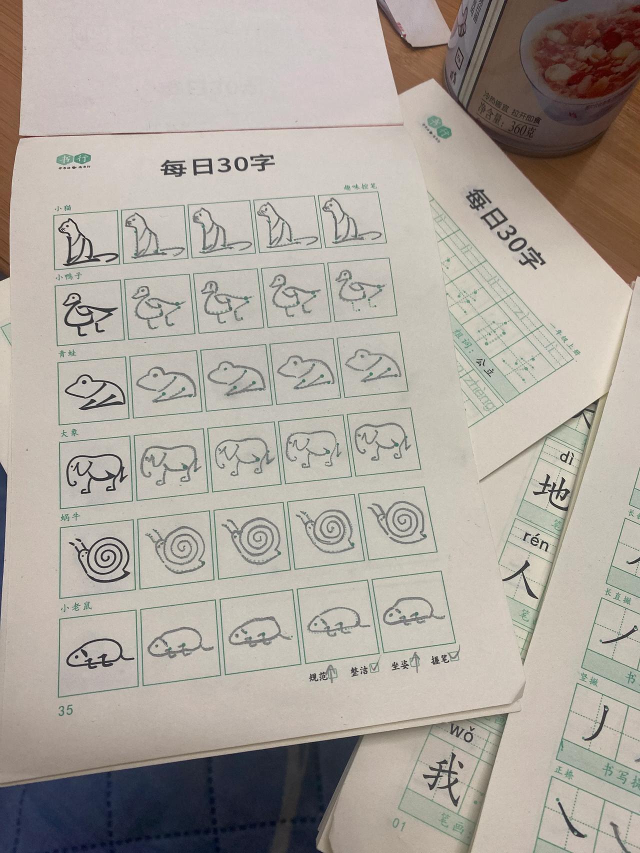 给张嘟嘟买的练字帖,每天都在坚持练习!线下写字课因为口罩😷原因,一直没去!在家里就是写这个,后面三张是张嘟嘟现在写的作业,字写的比以前好看多了[捂脸]练习字帖还是有用的!之前写的字没有型,不紧凑,都分家了,现在慢慢有型了! 张嘟嘟也挺喜欢写的[大笑] 我把它加入橱窗了,需要的可以看看[送心] 张嘟嘟同款字帖