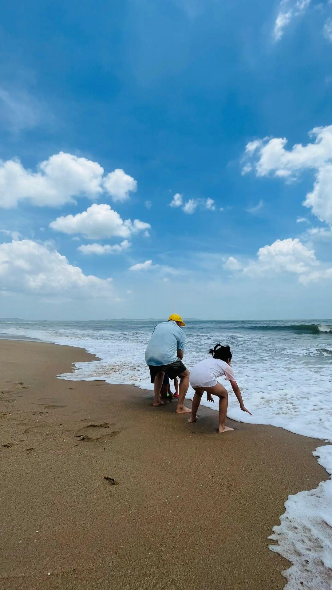 🏖️这里属于汕头海门一个小渔村的海滩,十里银滩,沙子的柔细程度可以比的上很多5A级的海边景区。重点是人很少,可以让小孩子随意的玩沙,捡贝壳。因为海浪有点大,不建议下水游泳,在安全的情况下可以在岸边感受海浪的冲刷。 🚗如果是4驱的suv可以开到沙滩上,其他车建议停在沙滩边上,否则容易陷车。 🛀这里旁边有家小卖部,可以提供日常食物和水的供应,还有洗手间,可以冲水洗沙,5块一次。 ⚠️由于是无人沙滩,这里也没有任何的救生设备。玩水要注意安全。 记得带走所有垃圾,把环境保护好。
