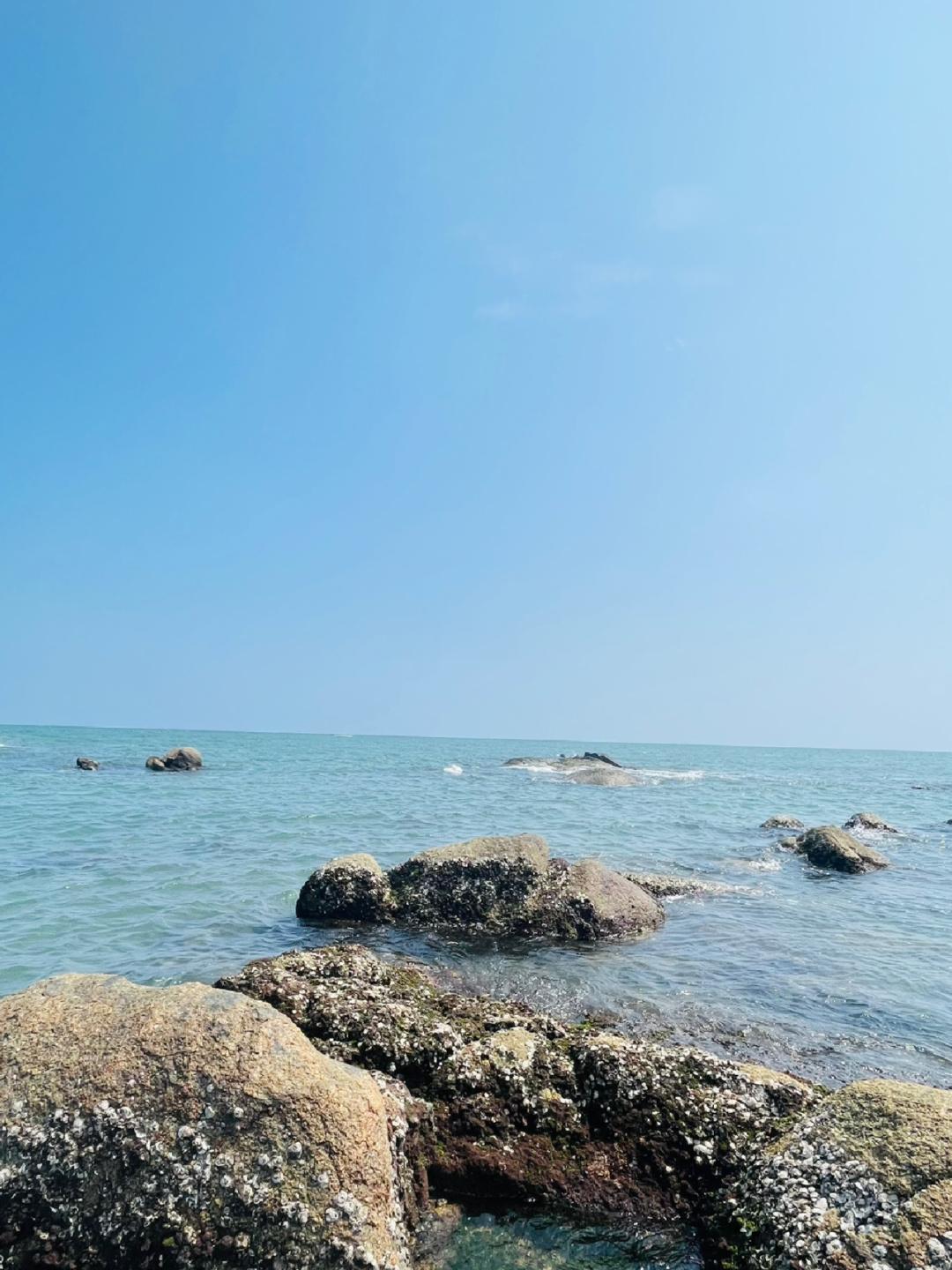 🏖️水清沙幼,原来在广东也有这么漂亮的海岸线,就算五一这样的大节日也比较少人,所以沙滩环境保护的比较好,这里礁石较多,很多海货都隐藏在里面,也非常适合小朋友挖沙和赶海。