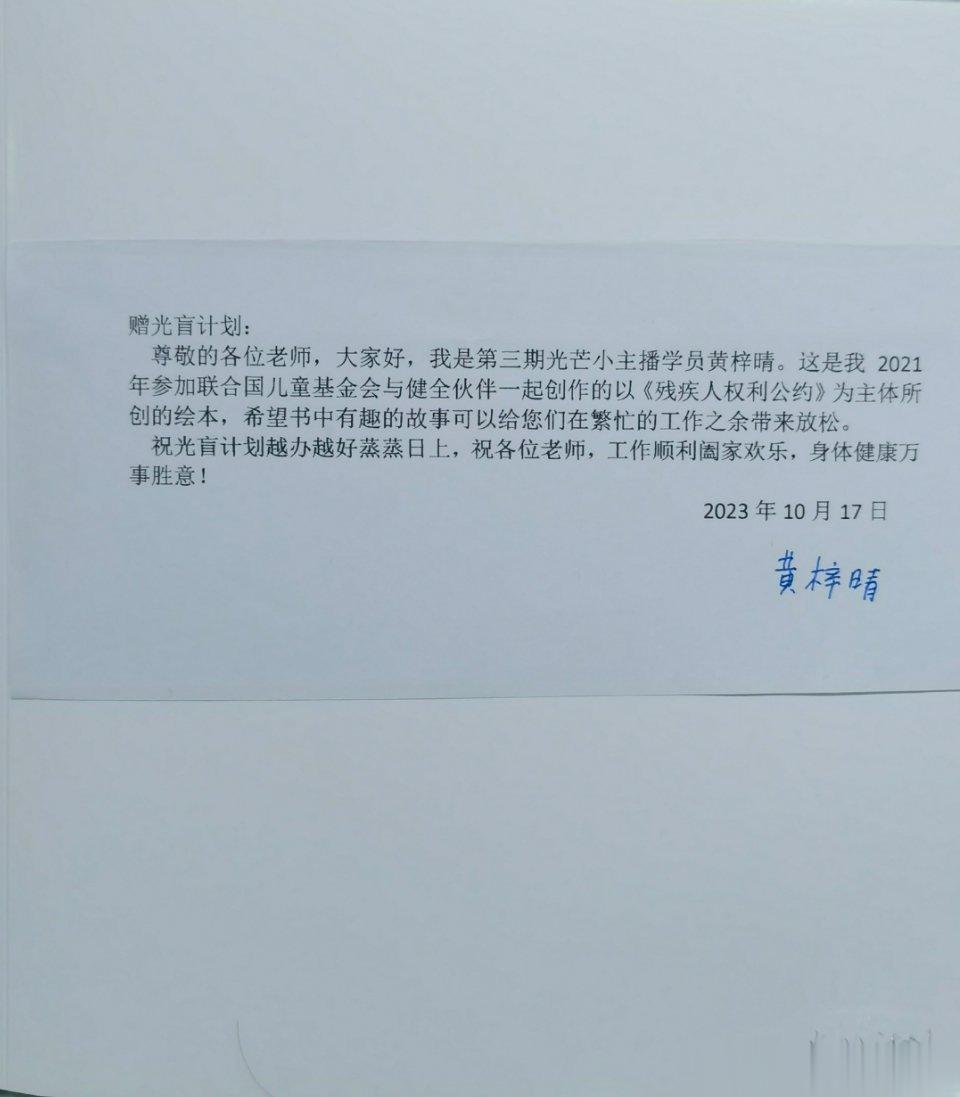 谢谢梓晴的礼物,这本书全世界只有八本,梓晴赠送光M计划两本,太珍贵了。书上的凹凸盲文是梓晴用透明的胶带一个字一个字的压上去的。