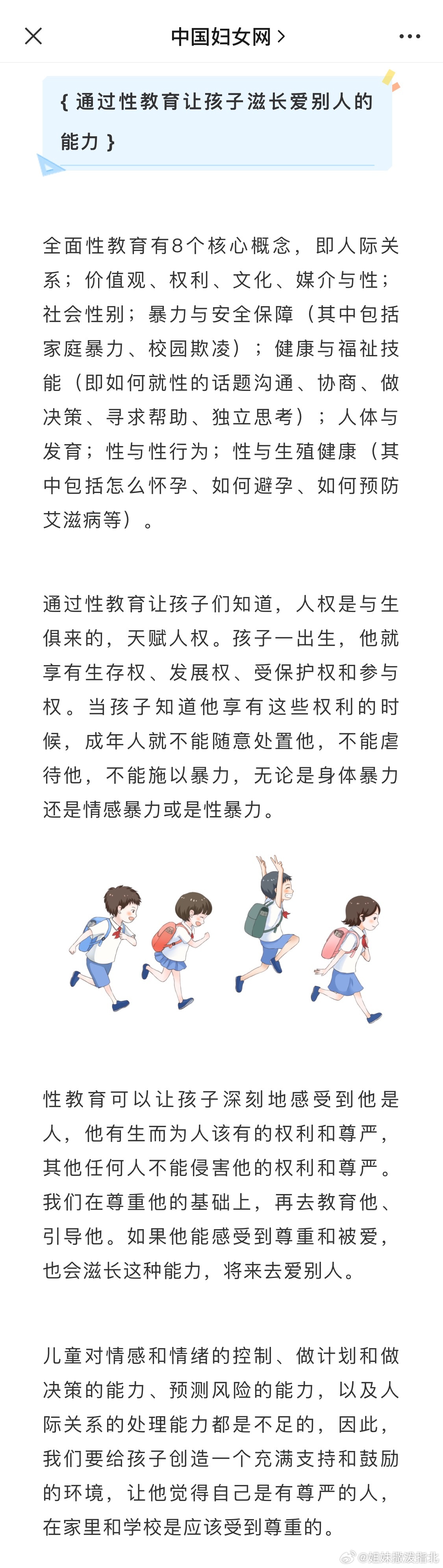 我们需要让孩子知道,身体是有尊严的,这个尊严是不能被别人侵犯的。你要尊重自己的身体,也要尊重别人的身体。