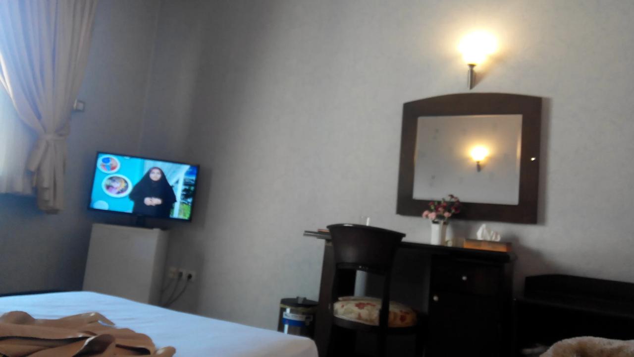 在伊朗酒店,打开电视,伊朗女主持人正在播新闻。