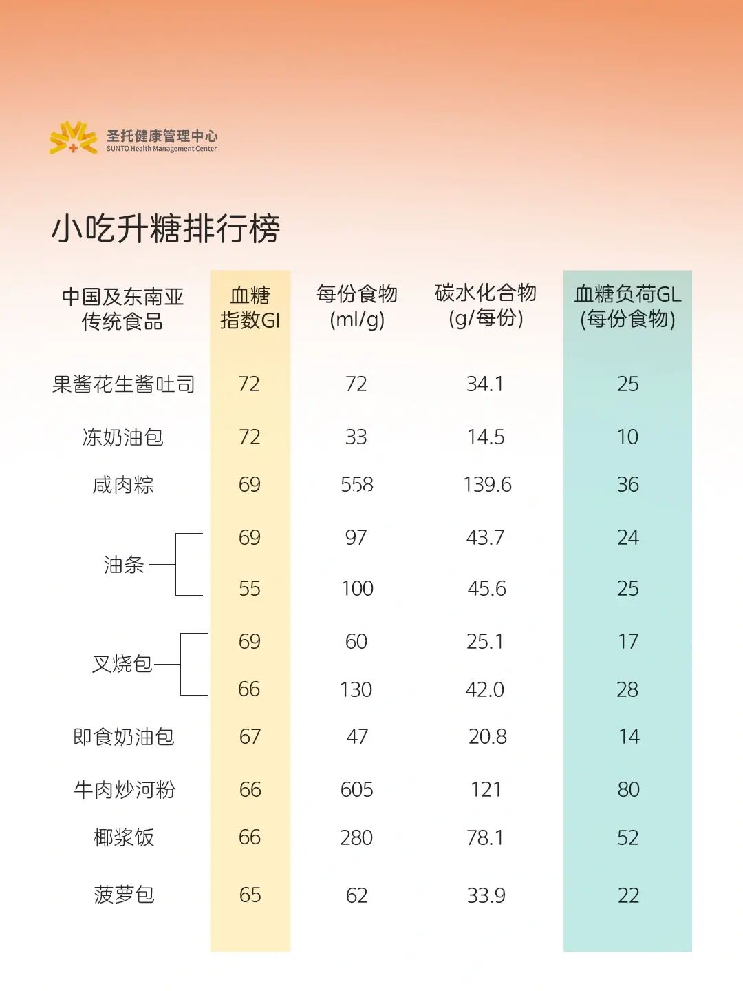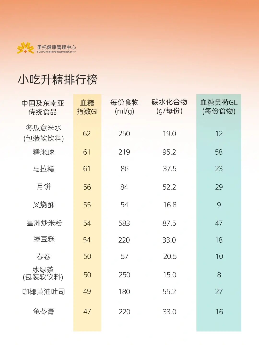 今天跟大家分享一些我国及东南亚传统小吃的「升血糖能力」排行榜。