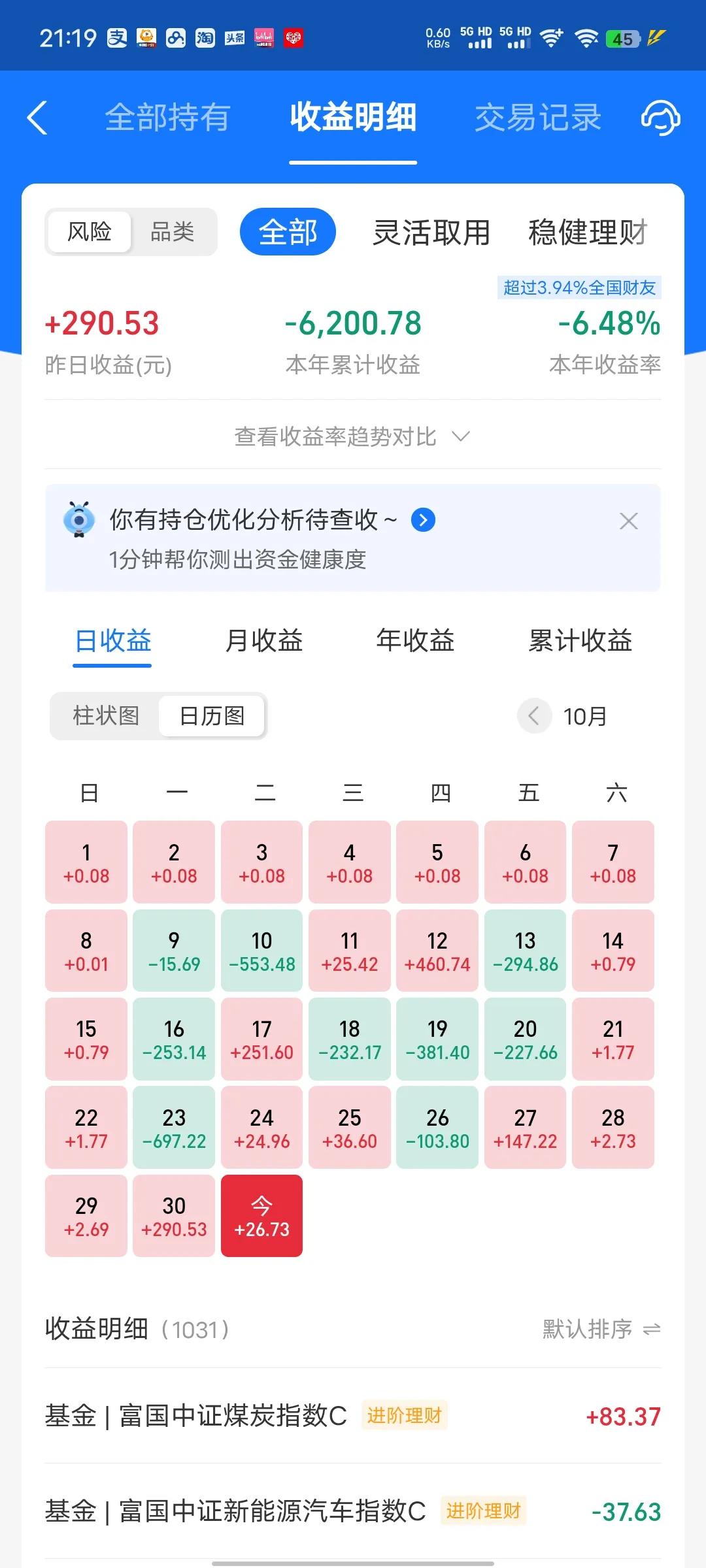 今天收益更新了,勉强对冲了。石油已经连跌几天了,还不见涨。新能源汽车刚涨两天又大
