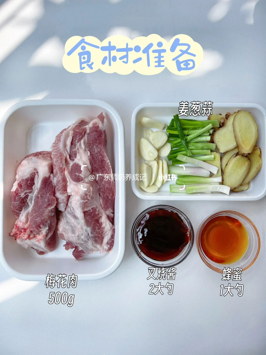 📝【食材】:梅花肉,叉烧酱,姜葱蒜,蜂蜜