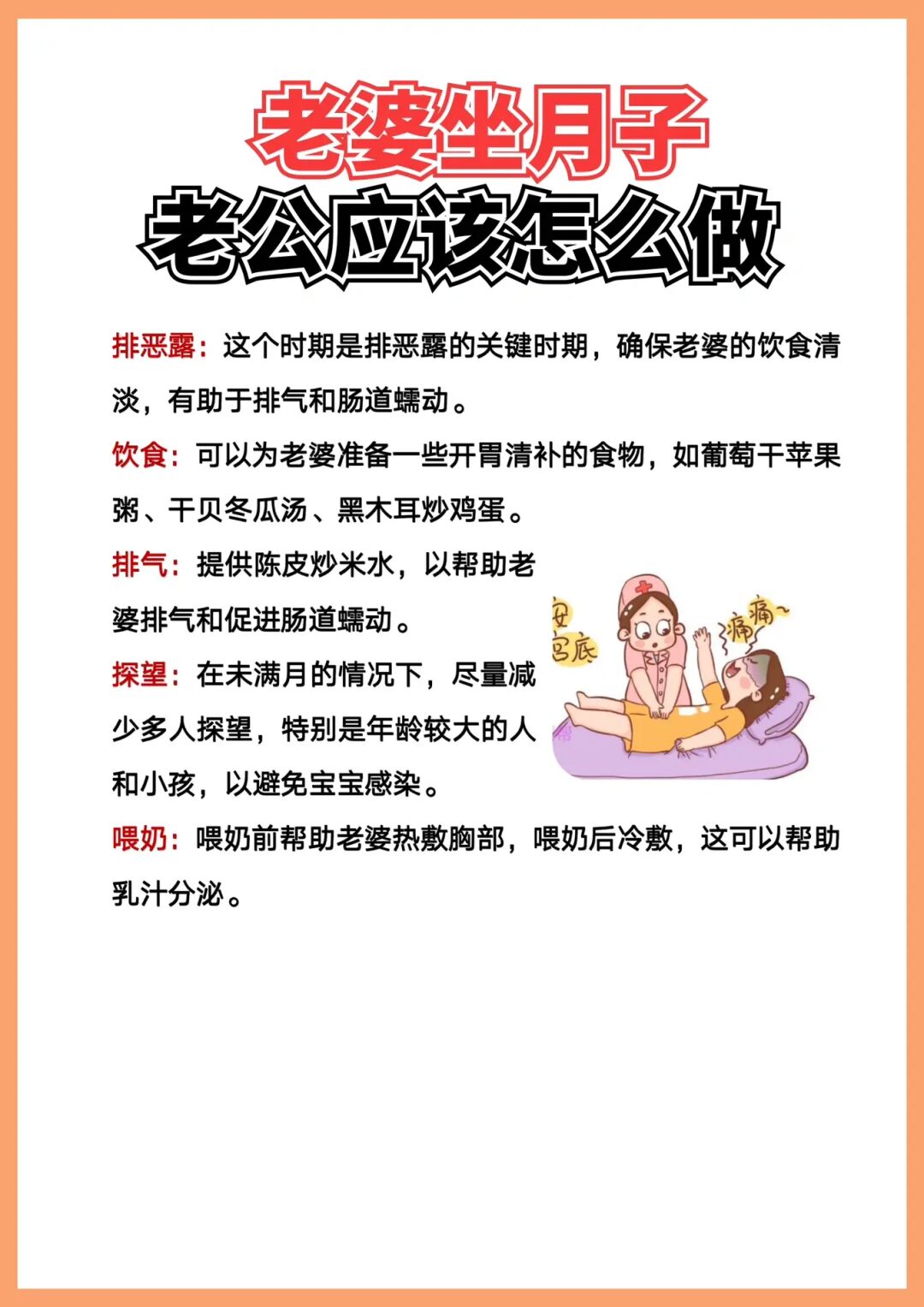 坐月子是一段特殊而珍贵的时光,在这个旅程中,老公将扮演着一个至关重要的角色,为妻子和新生儿提供无尽的支持、关心和爱。老婆坐月子期间,老公应该坐什么呢,本文总结了一些需要注意的事项,希望能够帮到大家