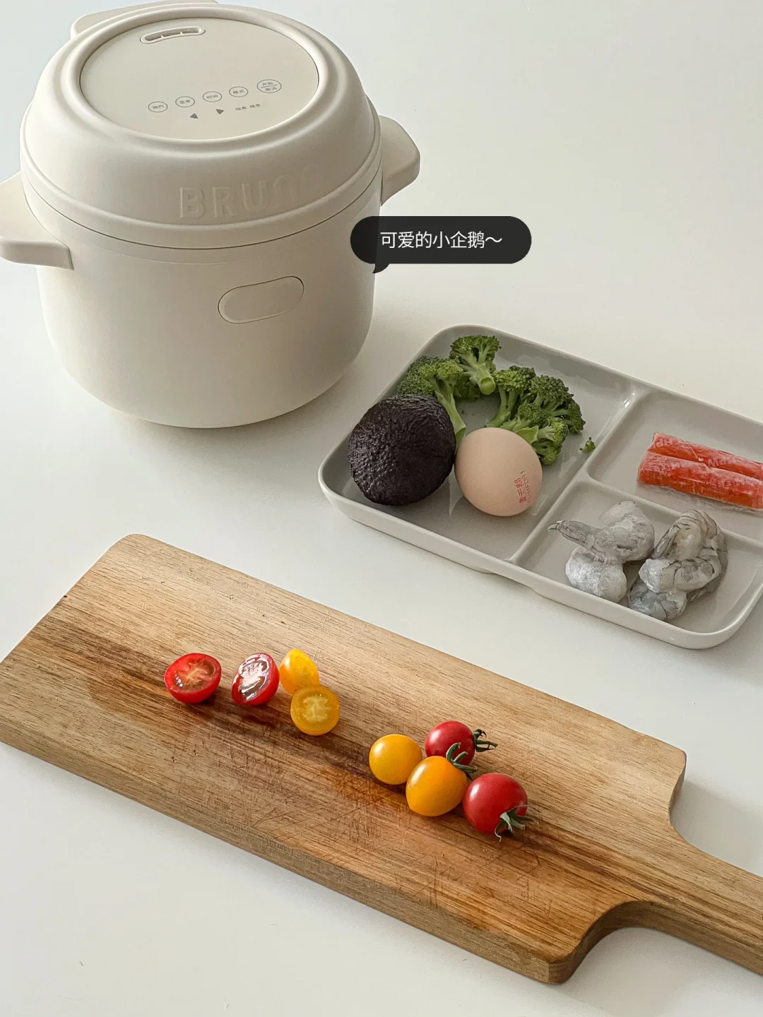 今天用到新入手的小饭墩,造型有点像企鹅🐧hh,奶fufu的颜色简直不要太好看,换电饭锅的原因就是因为之前用的电饭锅内胆开始花了,刚好看到这个新品电饭锅被颜值吸引就入手了,加上它有微压焖煮,煮出来的米饭Q弹饱满粒粒分明,是颜值和才华共存的存在了🤭
