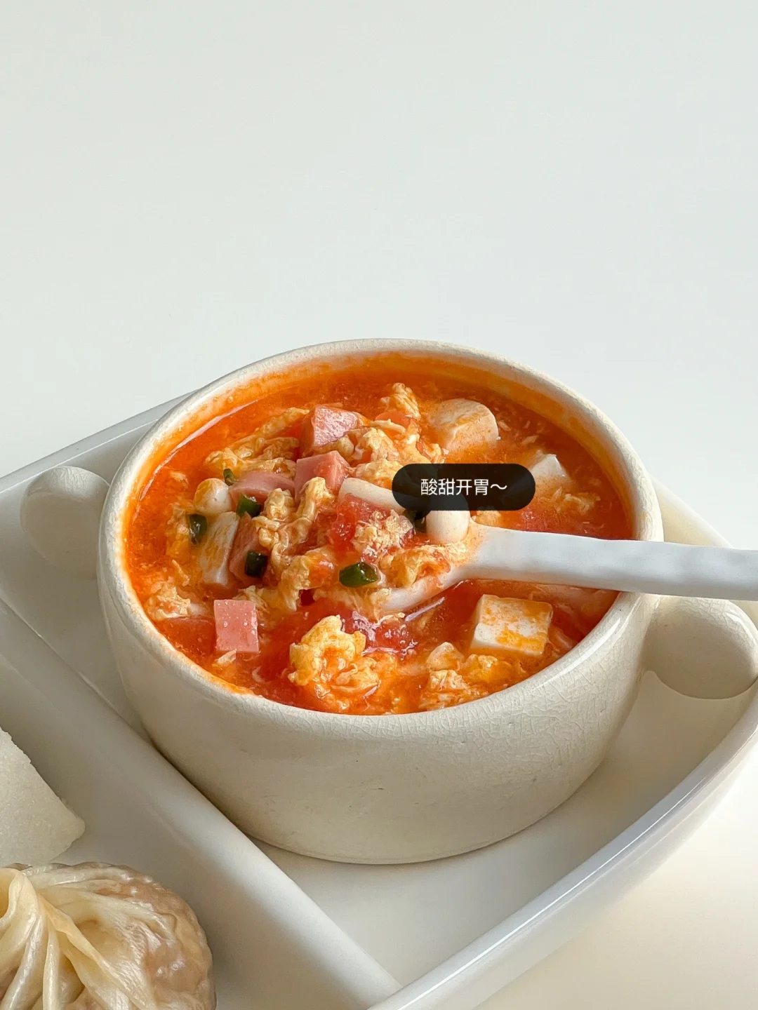 中式早餐🥢番茄火腿蛋汤&蛋黄烧麦&樱花糕🌸