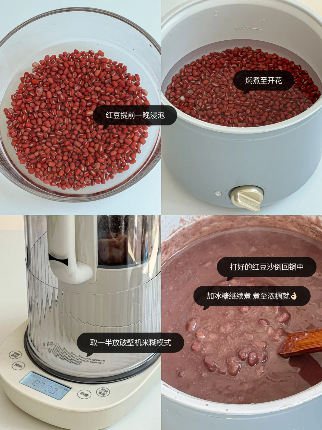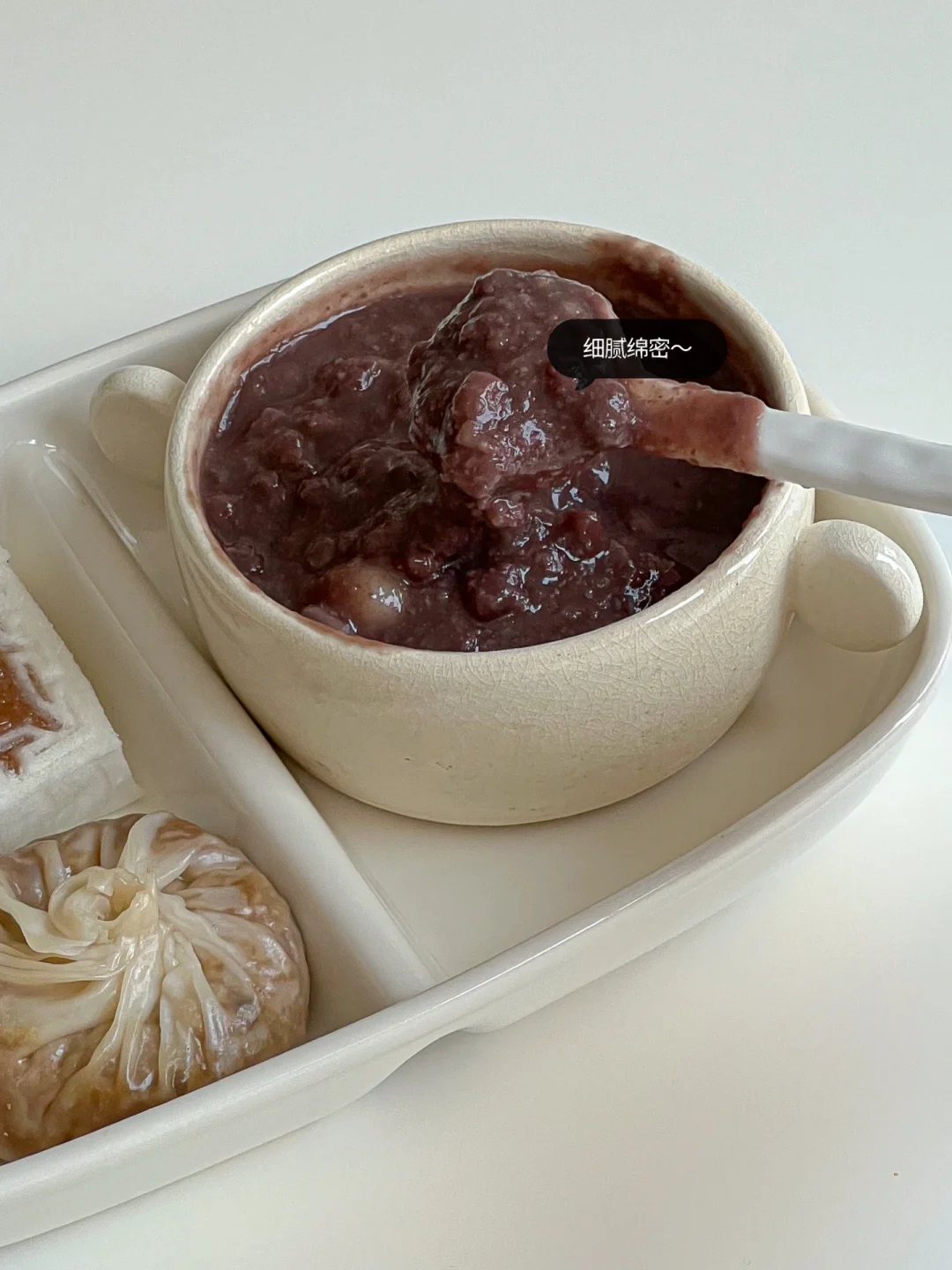 又是碳水快乐的一天~🙌🏻 细腻绵密的红豆粥暖心又暖胃 南瓜流心米糕和芝士烧麦真的绝绝子!🤤 让我每天早起的动力莫过于此了 · 👩🏻🍳食材: 红豆、冰糖、小圆子、南瓜米糕、芝士烧麦、驴打滚、黑胡椒小烤肠 🧾做法: ❶红豆提前一晚浸泡 ❷倒入锅中焖煮至开花,取一半放进破壁机米糊模式 ❸ 打好的红豆沙倒回锅中,放冰糖继续煮煮至浓稠 ❹黑胡椒烤肠煎熟 ❺南瓜米糕和芝士烧麦蒸熟