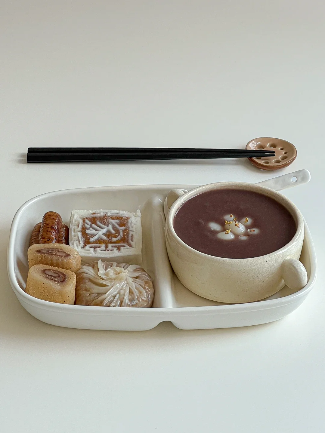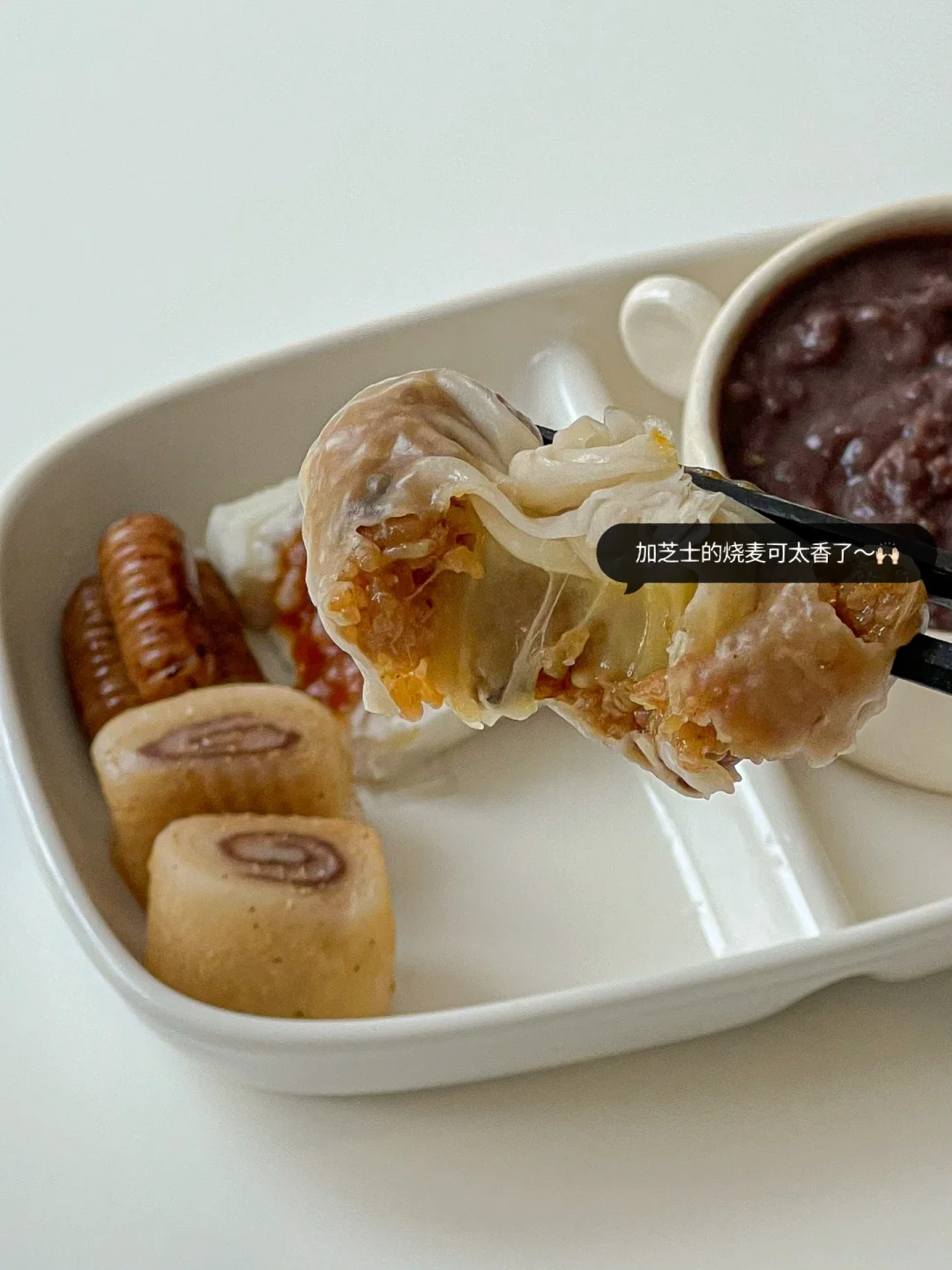中式早餐🥢桂花圆子红豆粥🥣芝士烧麦&米糕
