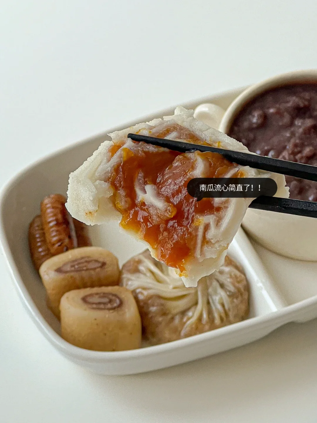中式早餐🥢南瓜糊🥣咸蛋黄米糕&小龙虾锅贴