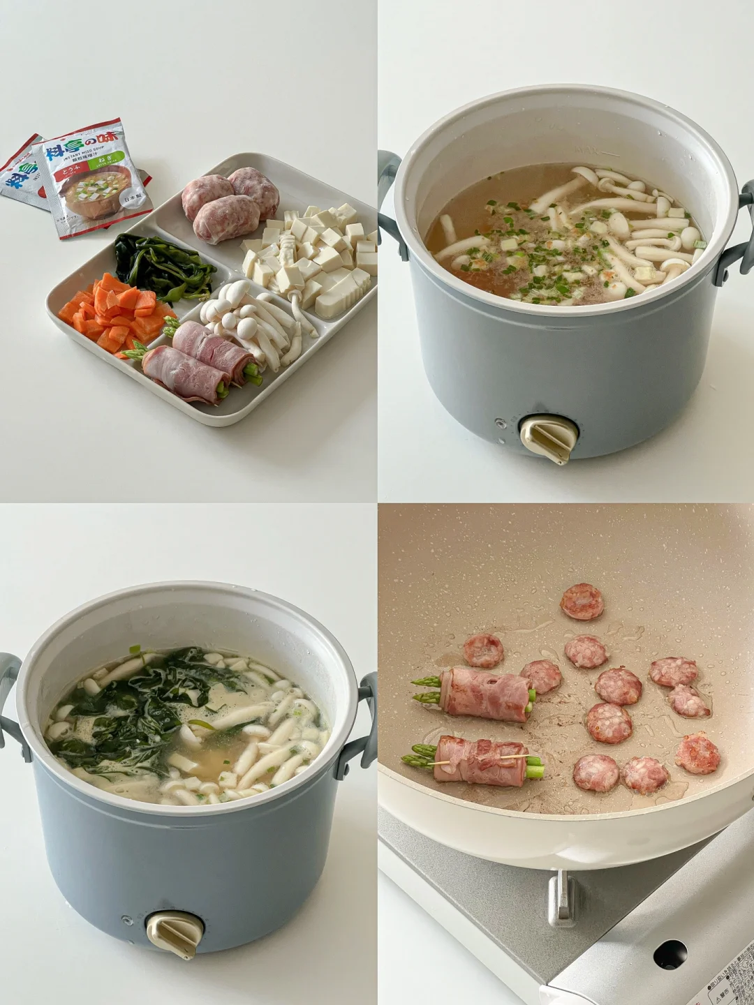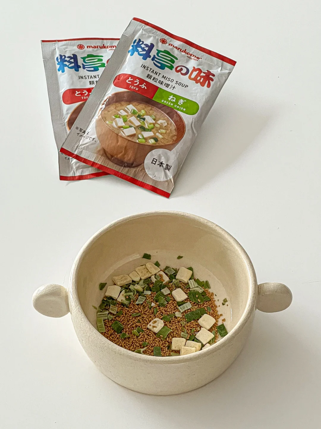 ❹关火加入两包冲泡即食味噌速食汤就🏻