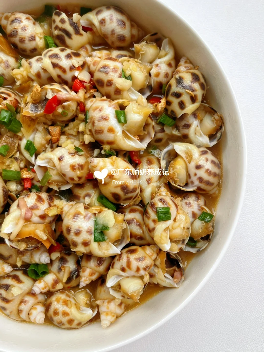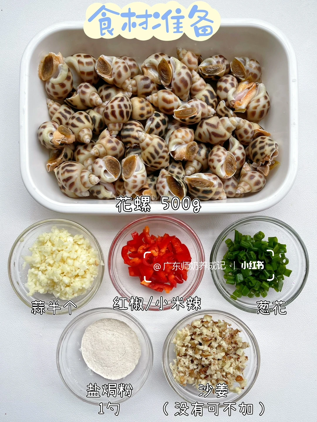 📝【食材】:花螺,盐焗粉,沙姜,蒜,红椒,葱