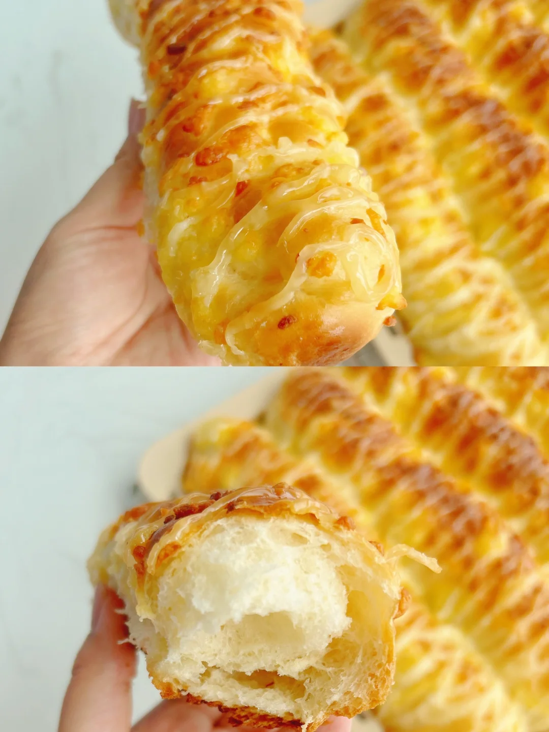 这个芝士面包条,真的太好吃了,表面香香脆脆,里面柔柔软软,喜欢咸口味的一定不要错过哦。