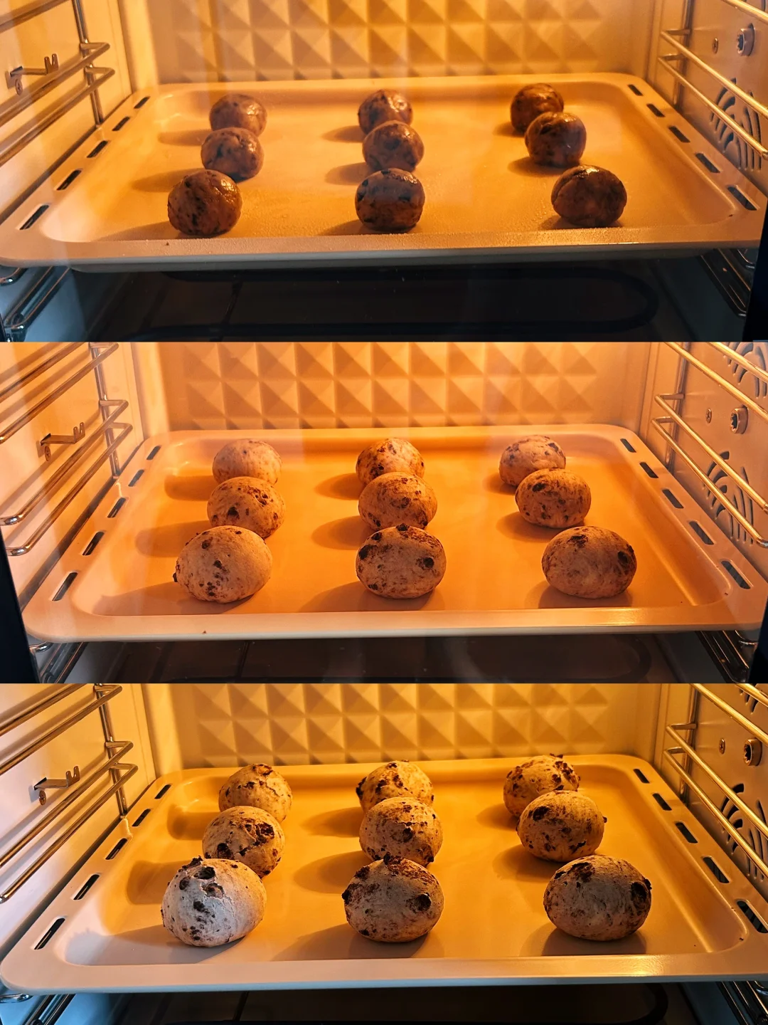 2. 平均分成9份,搓成小圆球,表面喷水,放入提前预热好的烤箱中层,160度烤30分钟,闷3分钟。