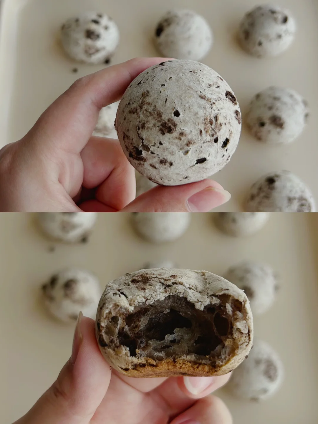 2. 空心的秘诀就是要把面团揉均匀,揉光滑。放入烤箱记得喷点水,防止开裂!