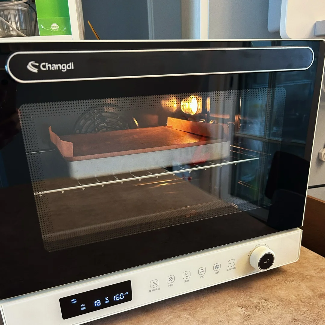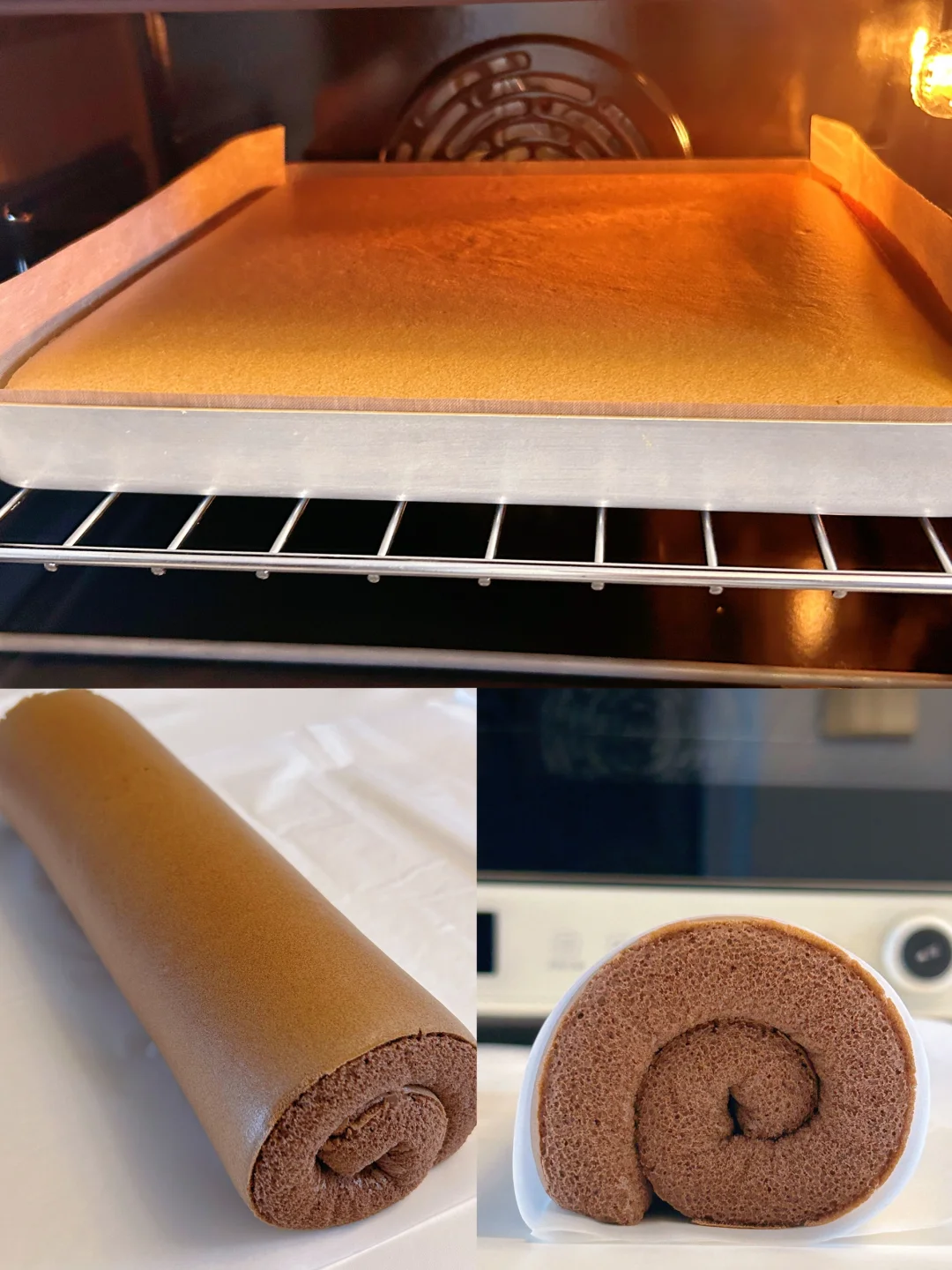 4️⃣放入提前预热好的烤箱中层,上火160度下火135度烤30分钟,最后五分钟开启热风模式,或者上管温度提高5度,表皮烤老一点,这样的蛋糕卷不会掉皮。