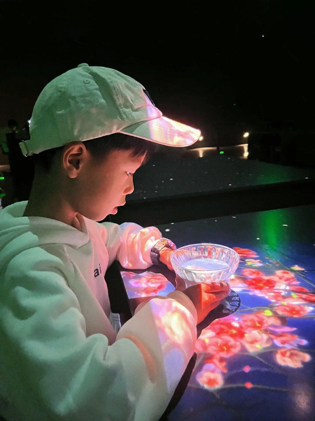 走进《星辰》,触摸星河,在城市中也能让孩子亲自感受星辰散落,银河璀璨的美丽色彩,真是太美妙了。在《花园》里一定要看够30分钟,一直会循环呈现多样艺术作品,让西方美术和中国传统文化颜色的碰撞!特别是巨幕名画,每一个细节、每一寸笔触都在巨大的沉浸空间中体现得淋漓尽致!让小朋友可以大开眼界,在玩中学到了很多知识,不愧是让孩子艺术启蒙的绝佳去处!