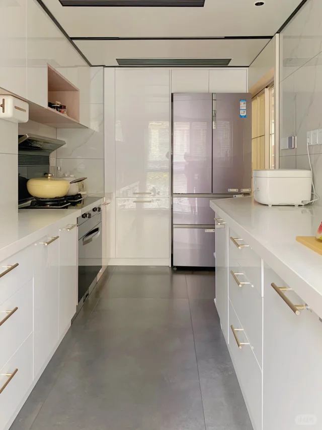 厨房地面建议选柔光砖,要选表面细腻光滑的,才好打理卫生。