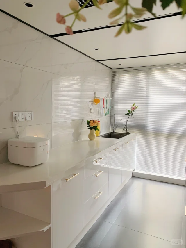 追求实用好打理,建议选聚脲美缝剂,它稳定性更强,防变色抗污和防水性能也更好。像是油烟大的厨房,用它一点都不用担心,地面搭配柔光砖很好打理卫生。