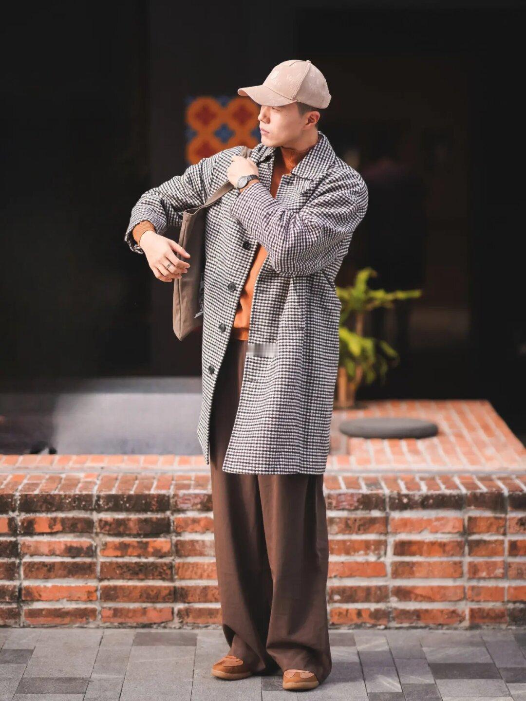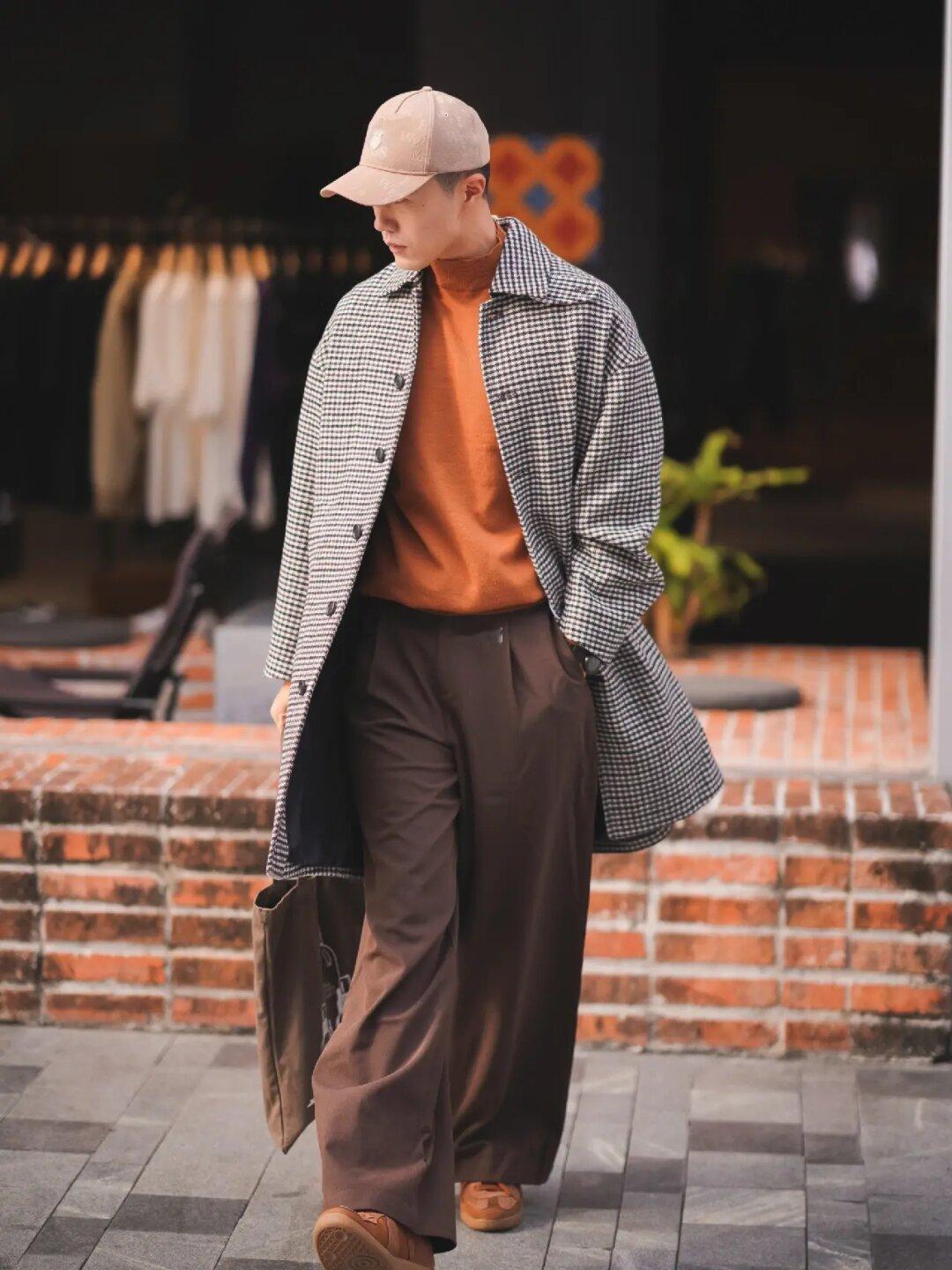 🟤秋冬吹来的美拉德风 🟤叠穿更有秋冬氛围感 适合上班通勤、日常休闲 多场景 . 千鸟格大衣保暖又质感 内搭高领棕色毛衣➕宽松长裤 轻松又好看