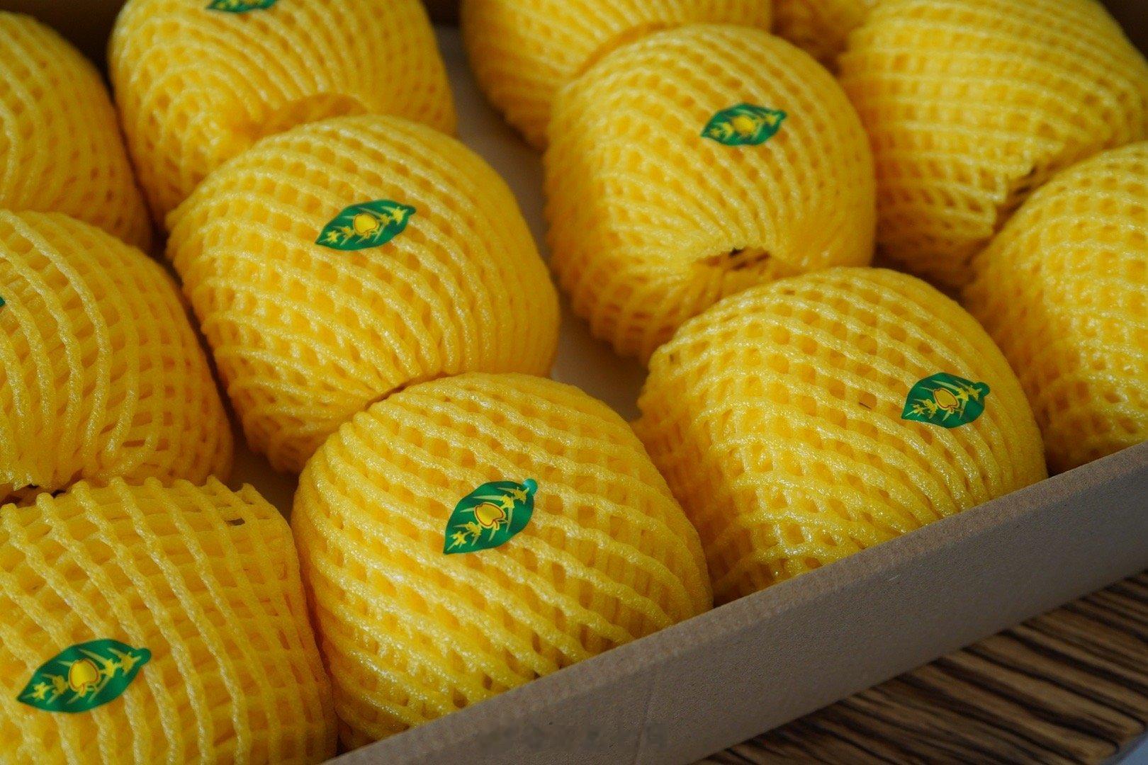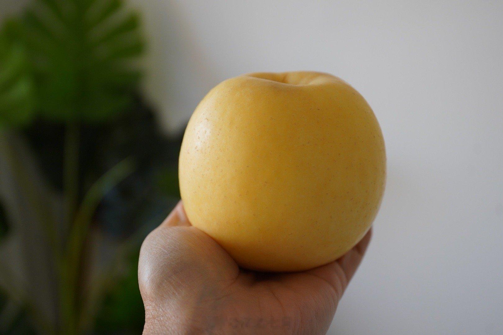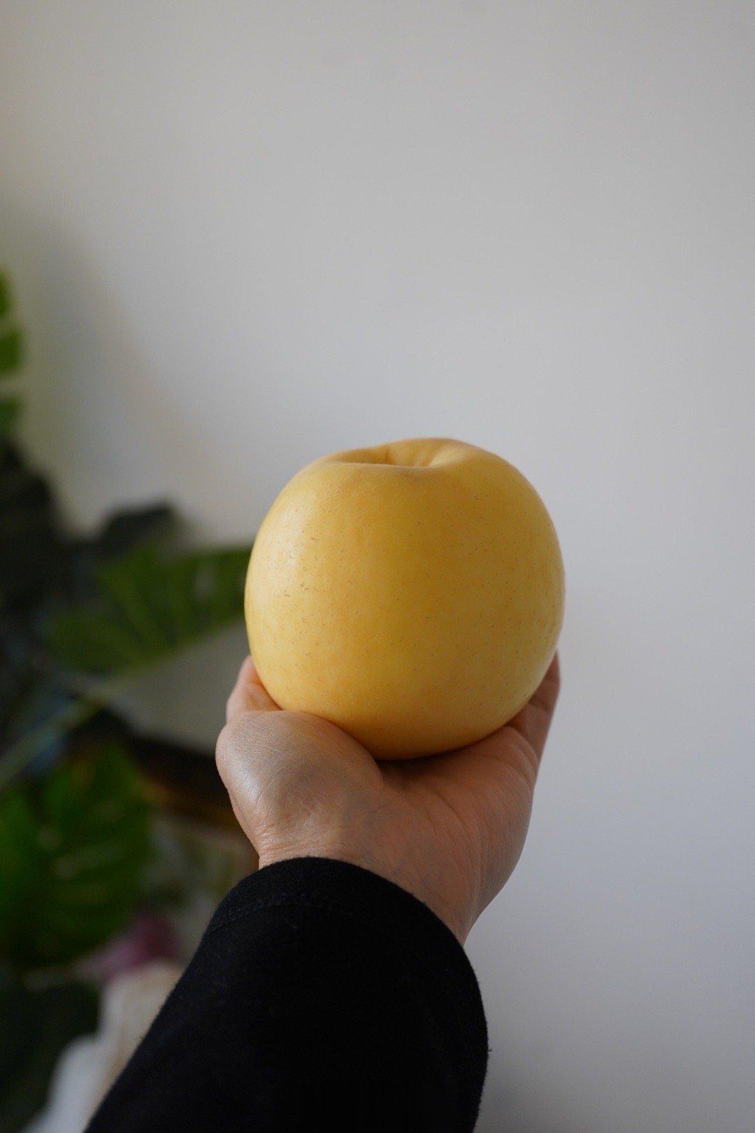 黄金苹果种植过程中,幼果时套袋,保护果面,果面呈黄灿灿的奶油色。因为不打蜡,果皮没有农药,水洗过后,可以直接带皮吃。大咬一口,耳边一声清脆,充足的果汁在口腔中打转,多汁的苹果肉香甜可口。