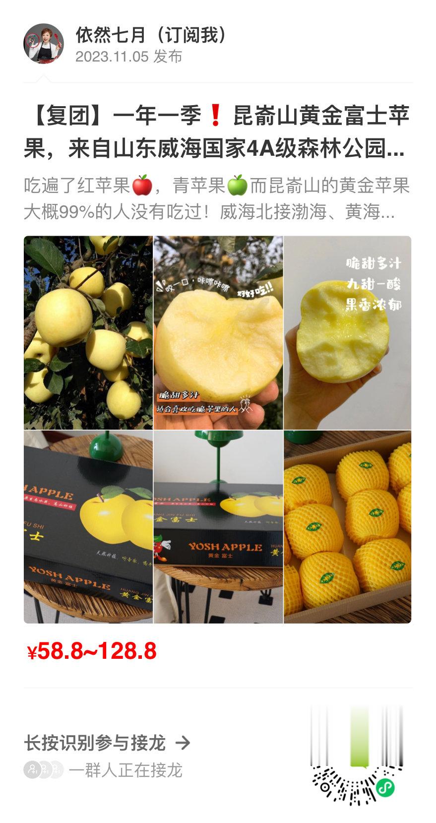 昆嵛山的黄金苹果大概99%的人没有吃过,果园不大产品有限,自然成熟经过8个多月的超长生长周期。普通苹果甜度13左右,黄金富士苹果的甜度能够达到17°