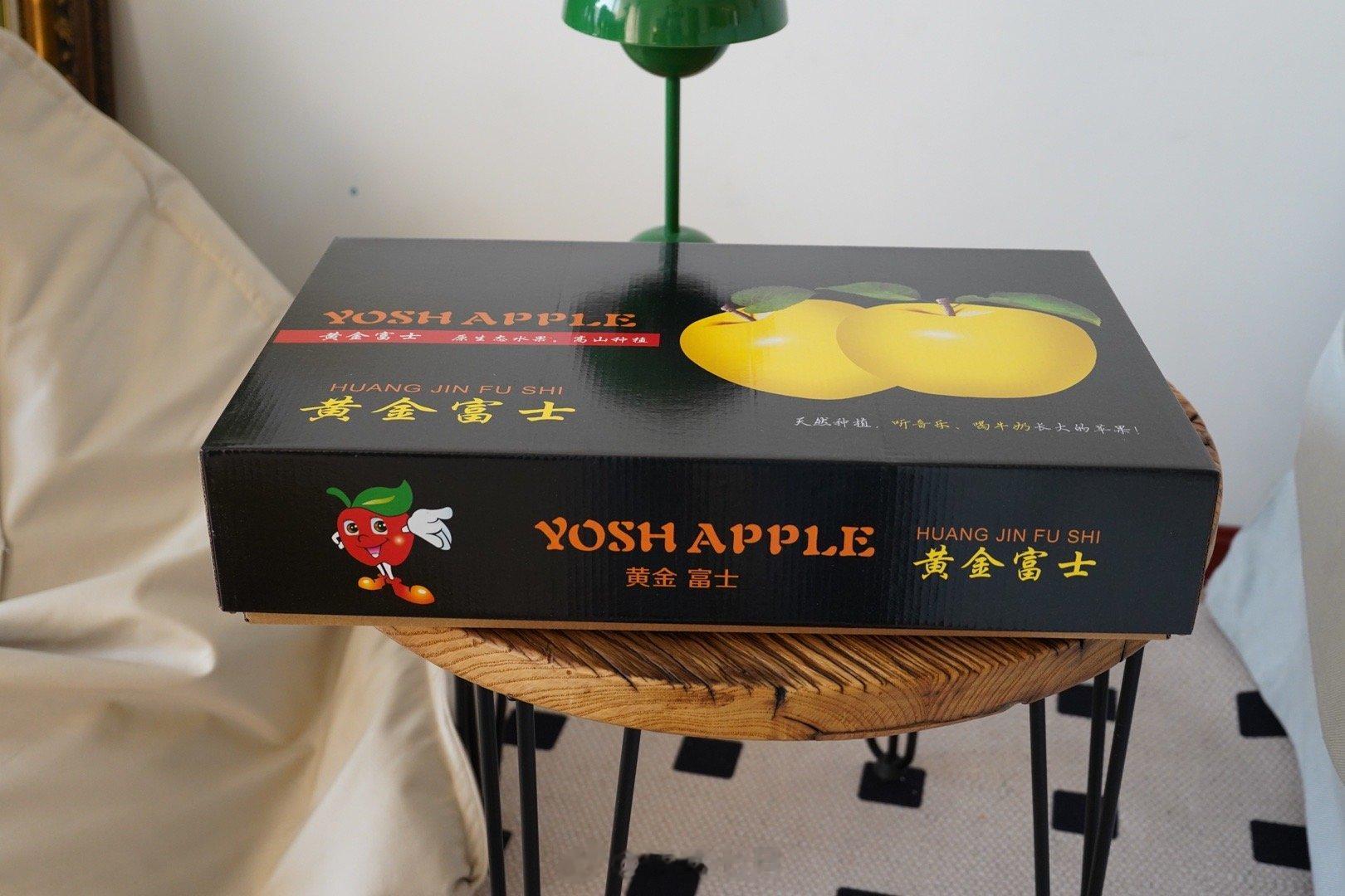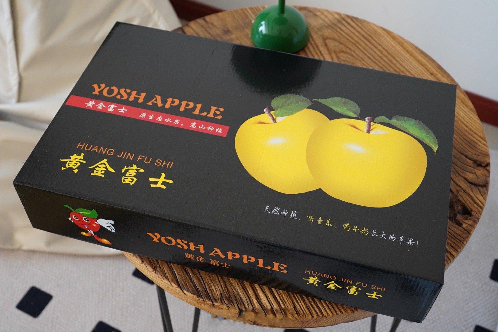 果园精选的黄金富士个头大,果绣少,清亮金黄。用双层防撞袋裹着,精美的礼盒送人也有面儿。一看就是不一样的精品苹果,吃一个就更爱了。