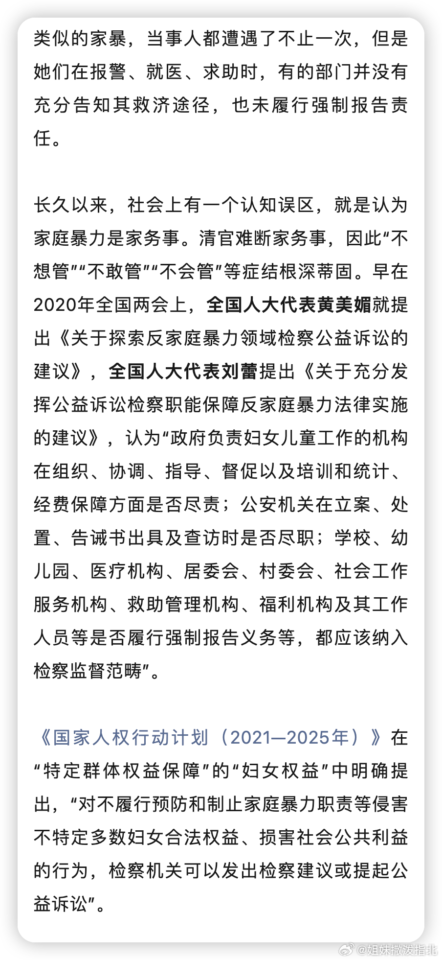 运用在反家暴、反就业性别歧视、反人格贬损等妇女权益保障领域的公益诉讼,文章里提到的检察官基本都是女性[赞][赞][赞]