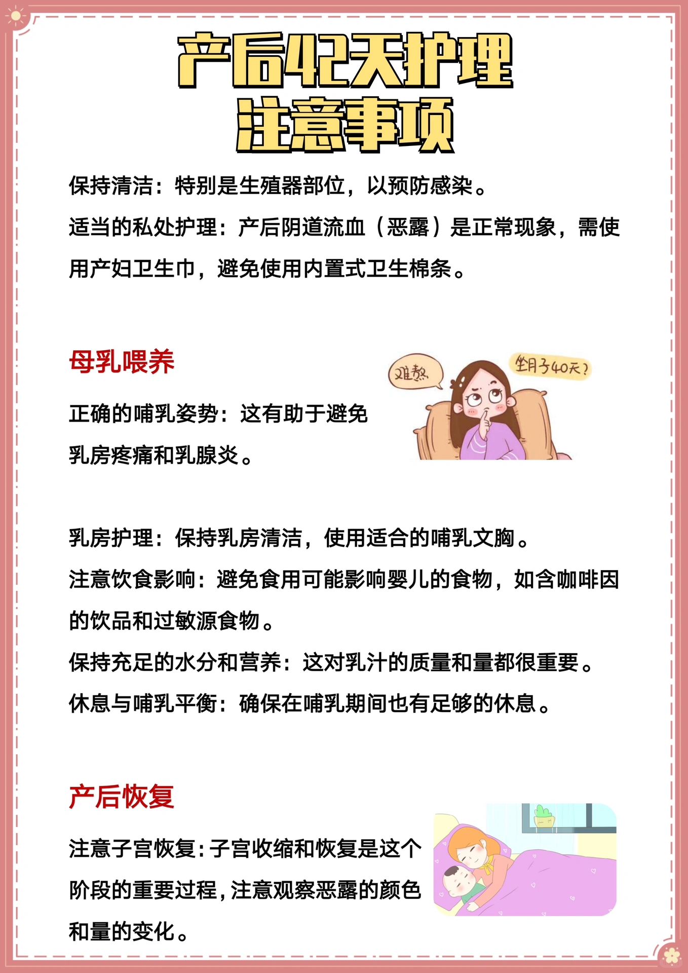 在迎接新生命的同时,新妈妈们也开启了一段特殊的恢复之旅——产后恢复期。俗称“月子”的这42天,对于新妈妈的身体和心理健康至关重要。这段时间不仅是身体机能从怀孕及分娩中恢复的关键时期,也是心理适应和母乳喂养的重要阶段。正确的月子调养对于防止产后并发症、促进身体恢复非常重要,这里总结了从饮食、休息、身体恢复到心理健康的注意事项,每一个细节都可能影响到产后的恢复质量,希望能够帮助到各位新妈妈们~