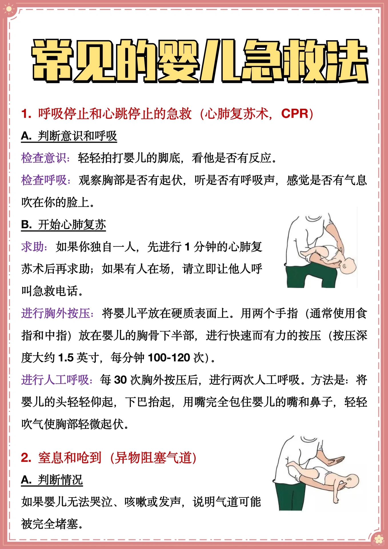 以上总结了一些婴儿急救方法,作为父母都不希望用到,但不能不知道!