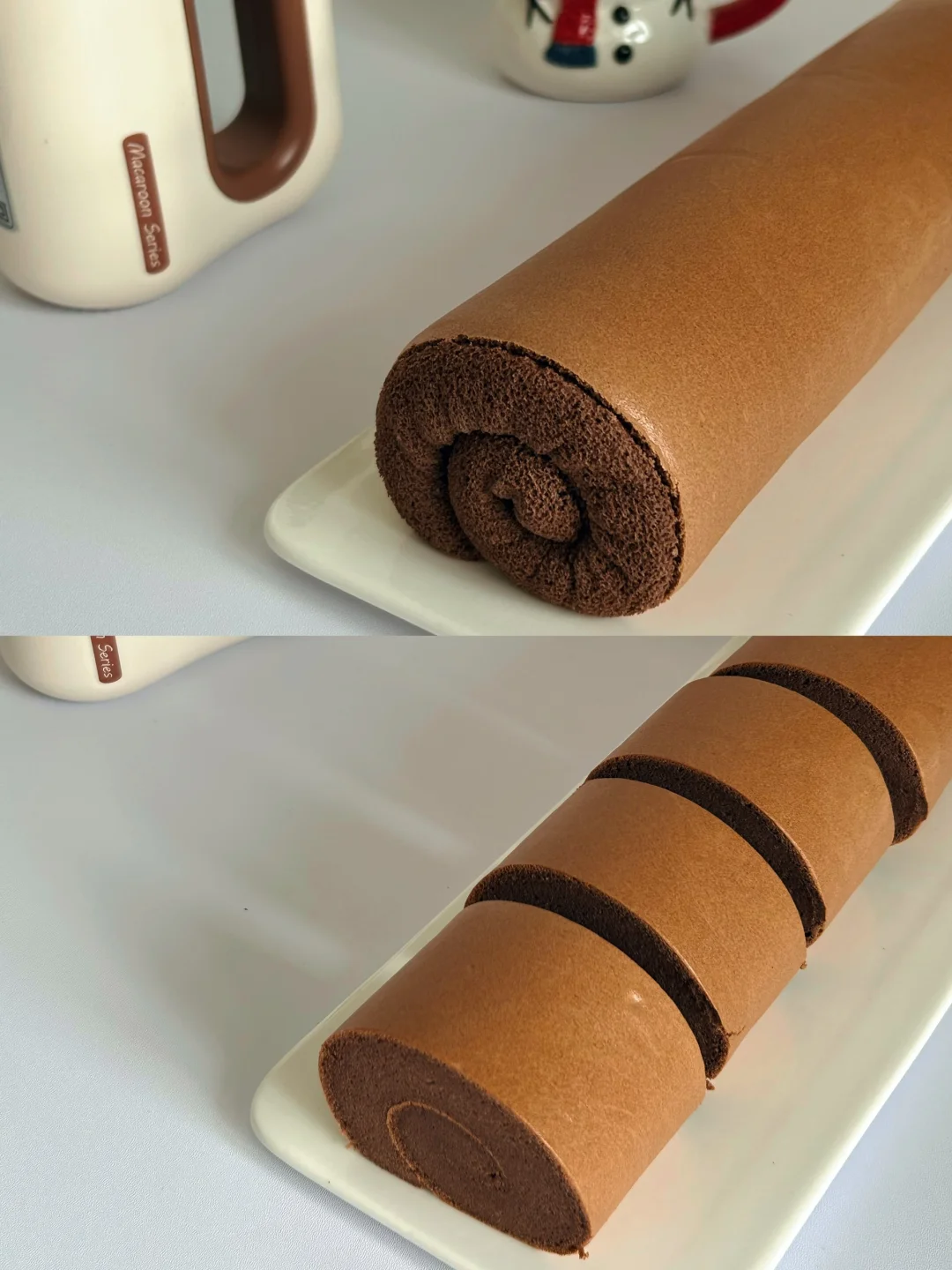 超浓郁的可可味蛋糕卷,按照下面的步骤做,不回缩不塌陷,蛋糕卷最重要的就是蛋白,蛋白打发的到位了很难不成功。
