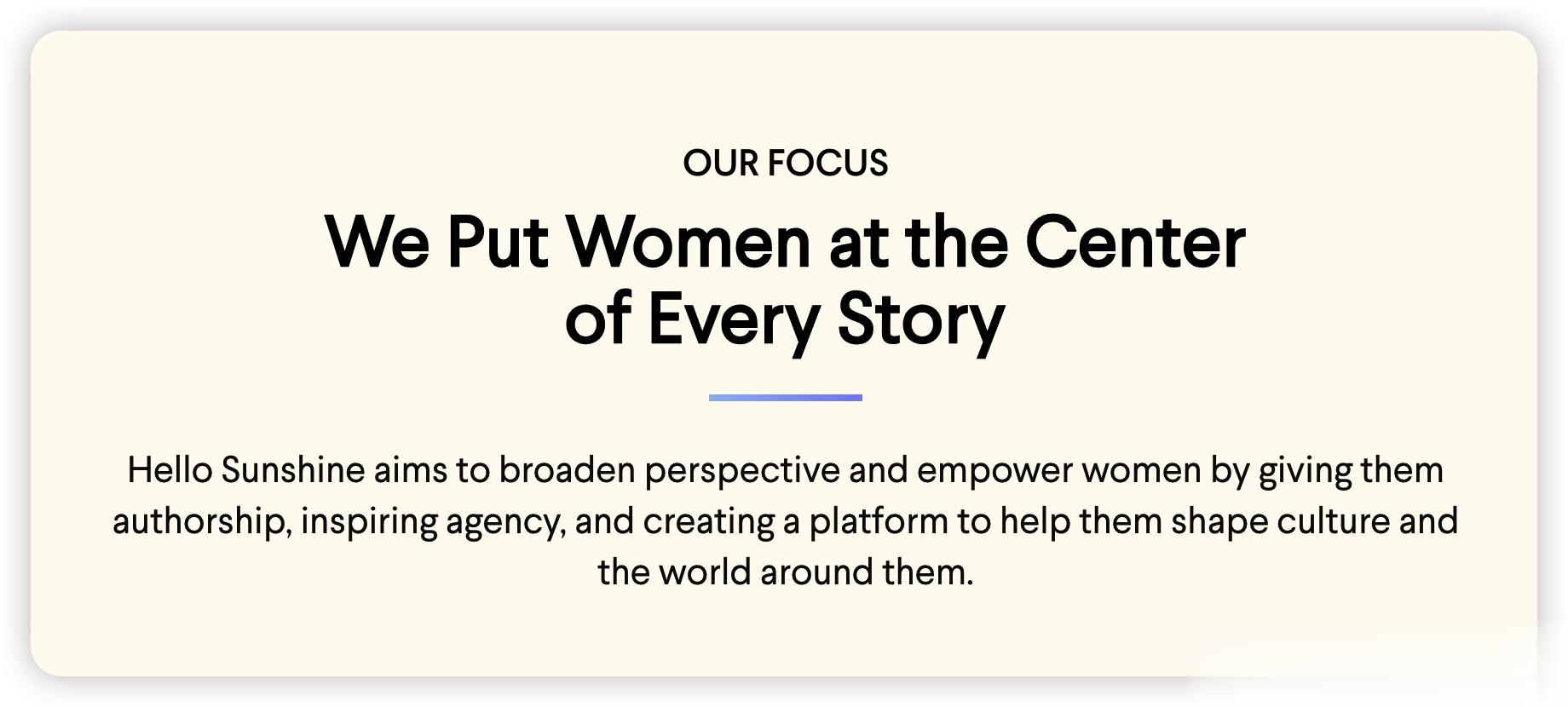 瑞茜曾在一份声明中表示,“我创办这家公司是为了改变媒体对所有女性对看法”。
