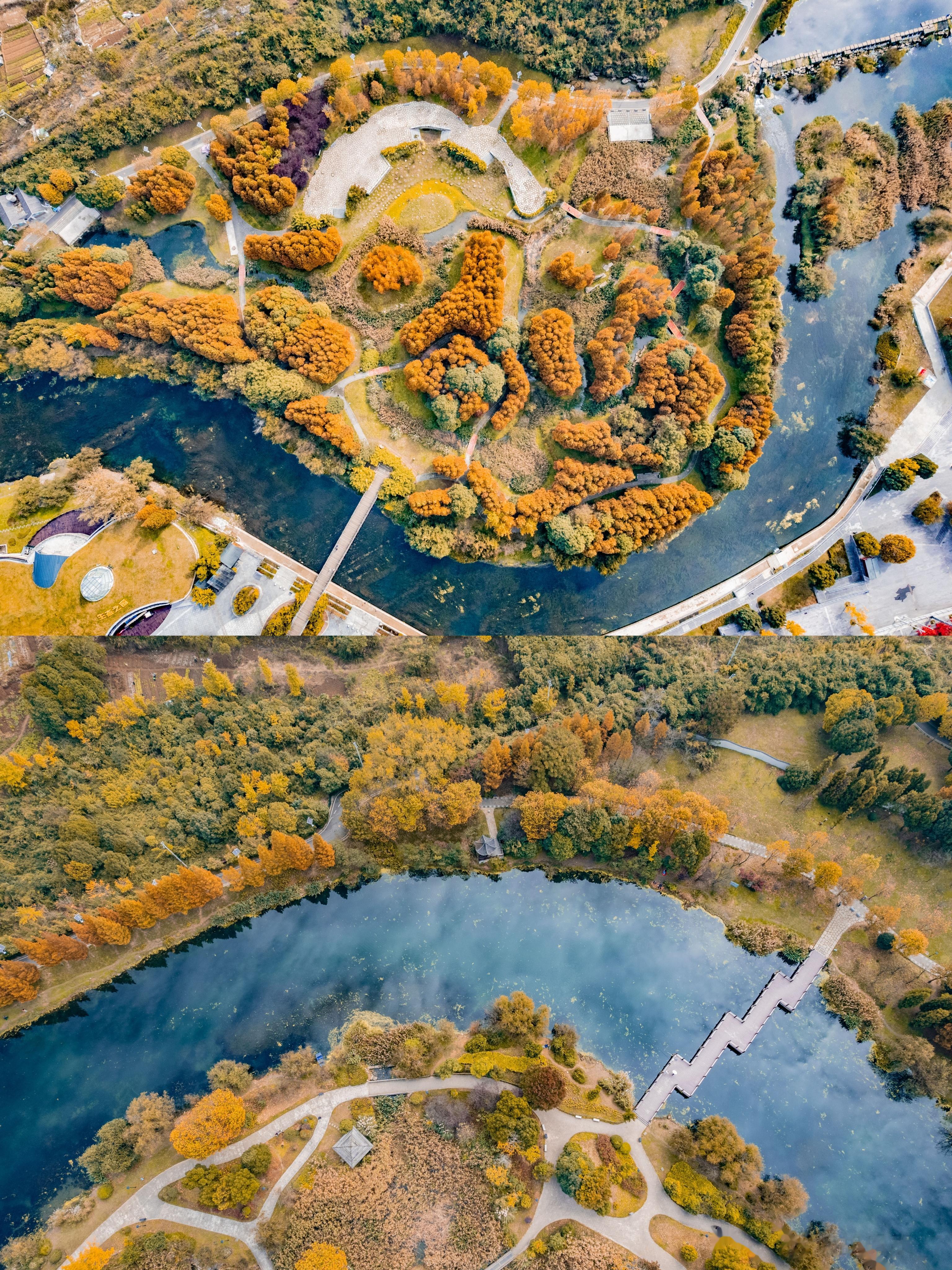 📌花溪公园,这里最早可追溯到清代,中心区域有一架退役战斗机,航拍十分好看。