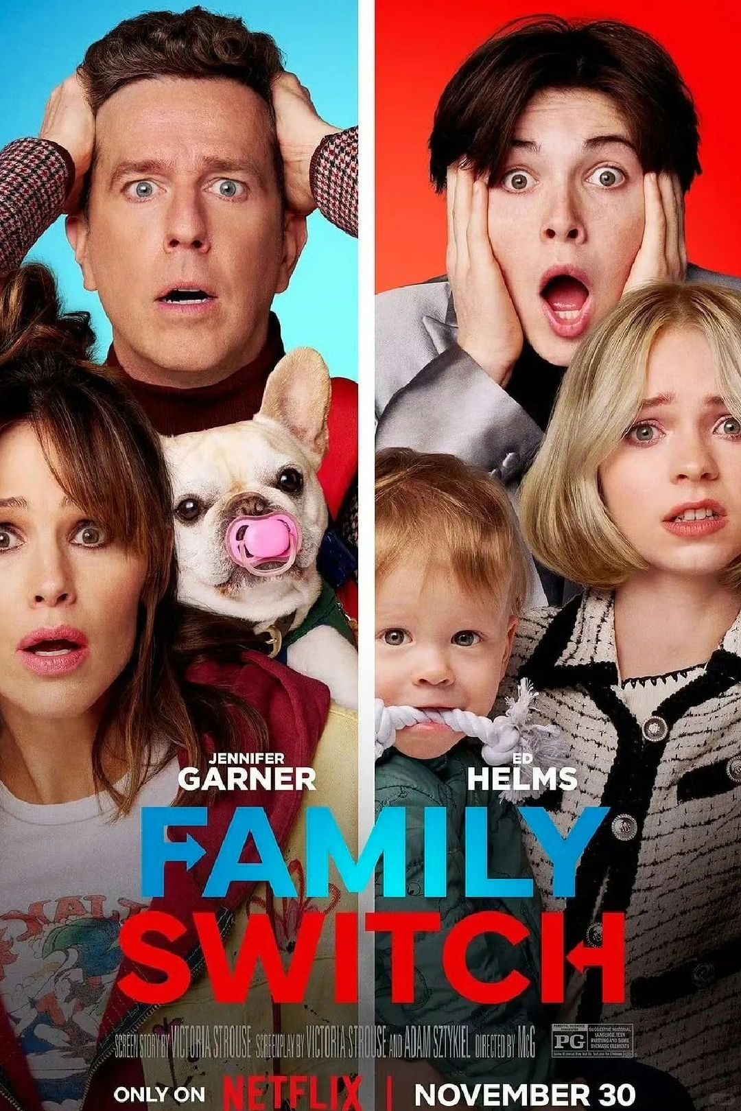 🌟《全家变身大作战》 平台:人人定档:2023年11🈷️30 🎬看预告要笑飞了😆全家灵魂互换可还行,最逗的是家里的小婴儿竟然和家里的狗狗也互换了‼️感觉是超级治愈超级搞笑的一部剧😂 🔔而且里面的小女儿是《星期三》里的小狼女演的‼️