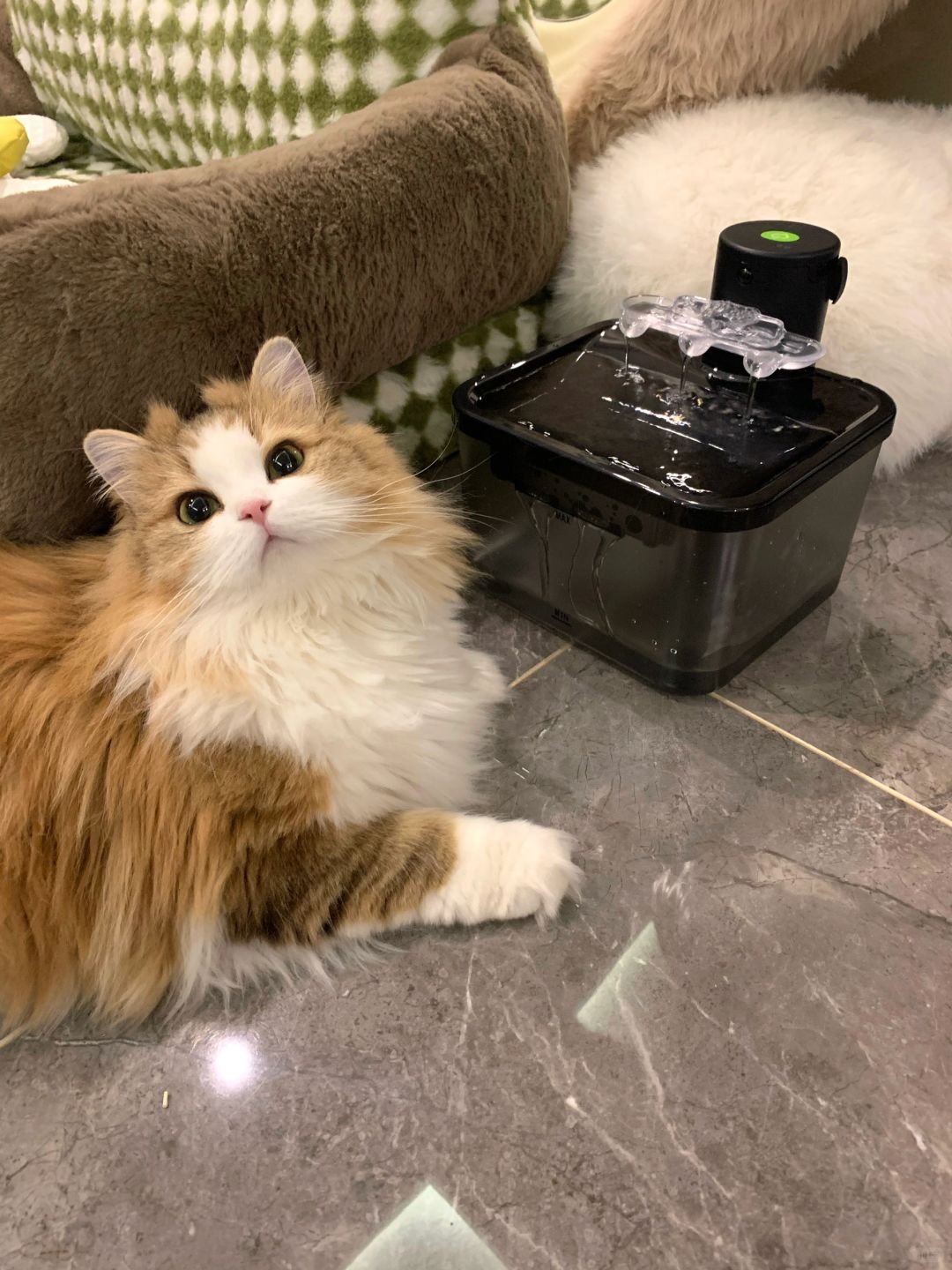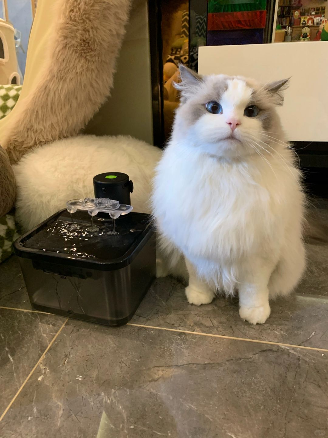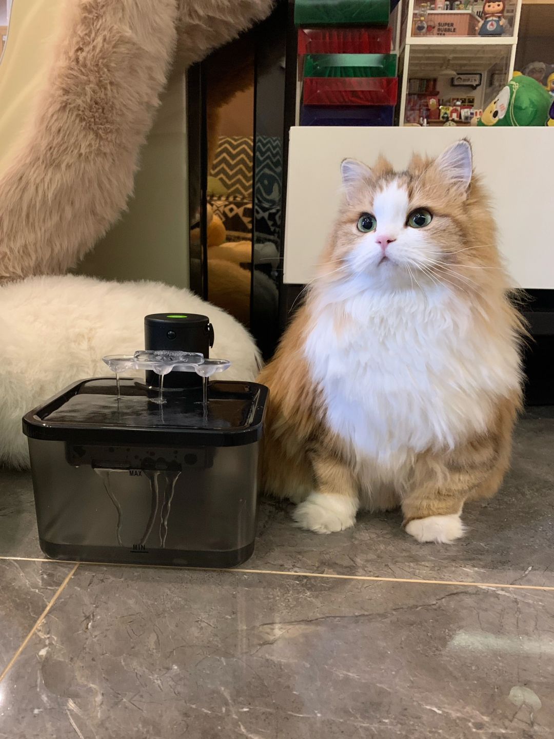 粑粑宝一只手就能抱起来诶 谁懂 为了让猫随时能喝水 搞了个到处都能放的猫咪水吧