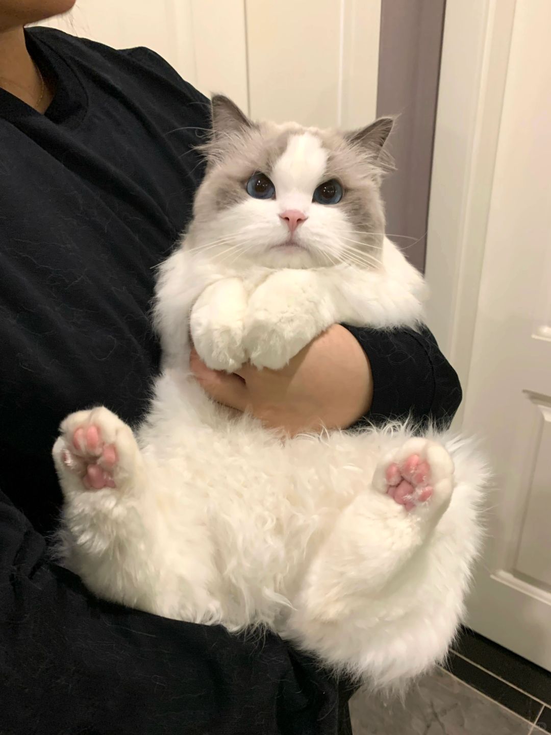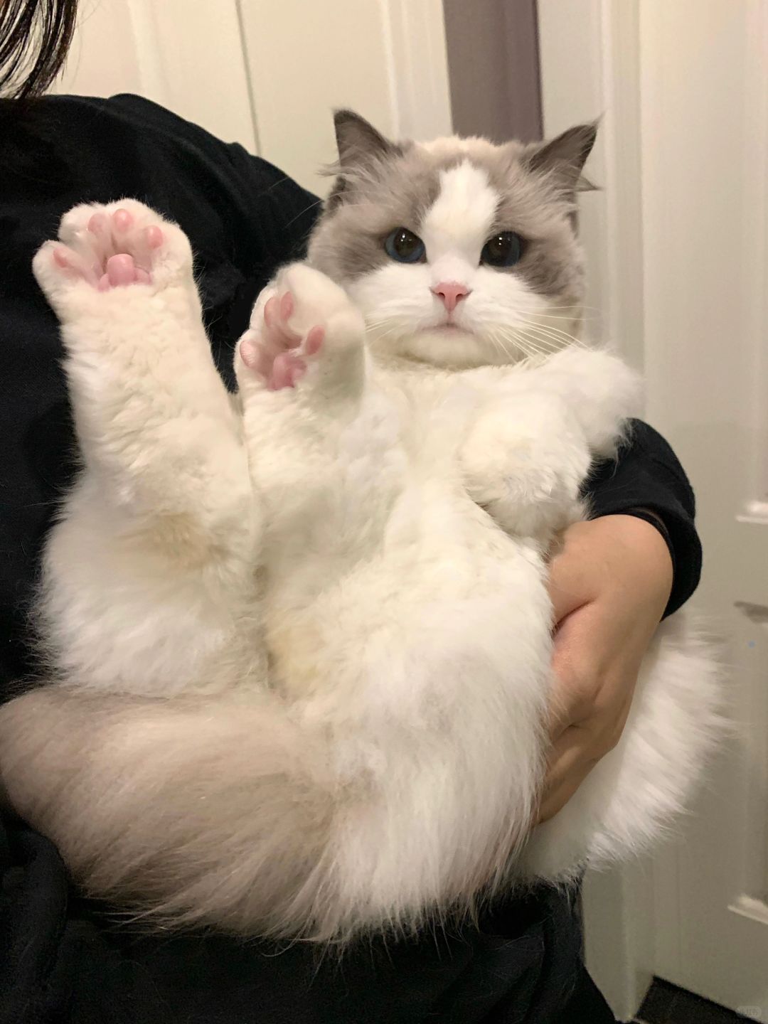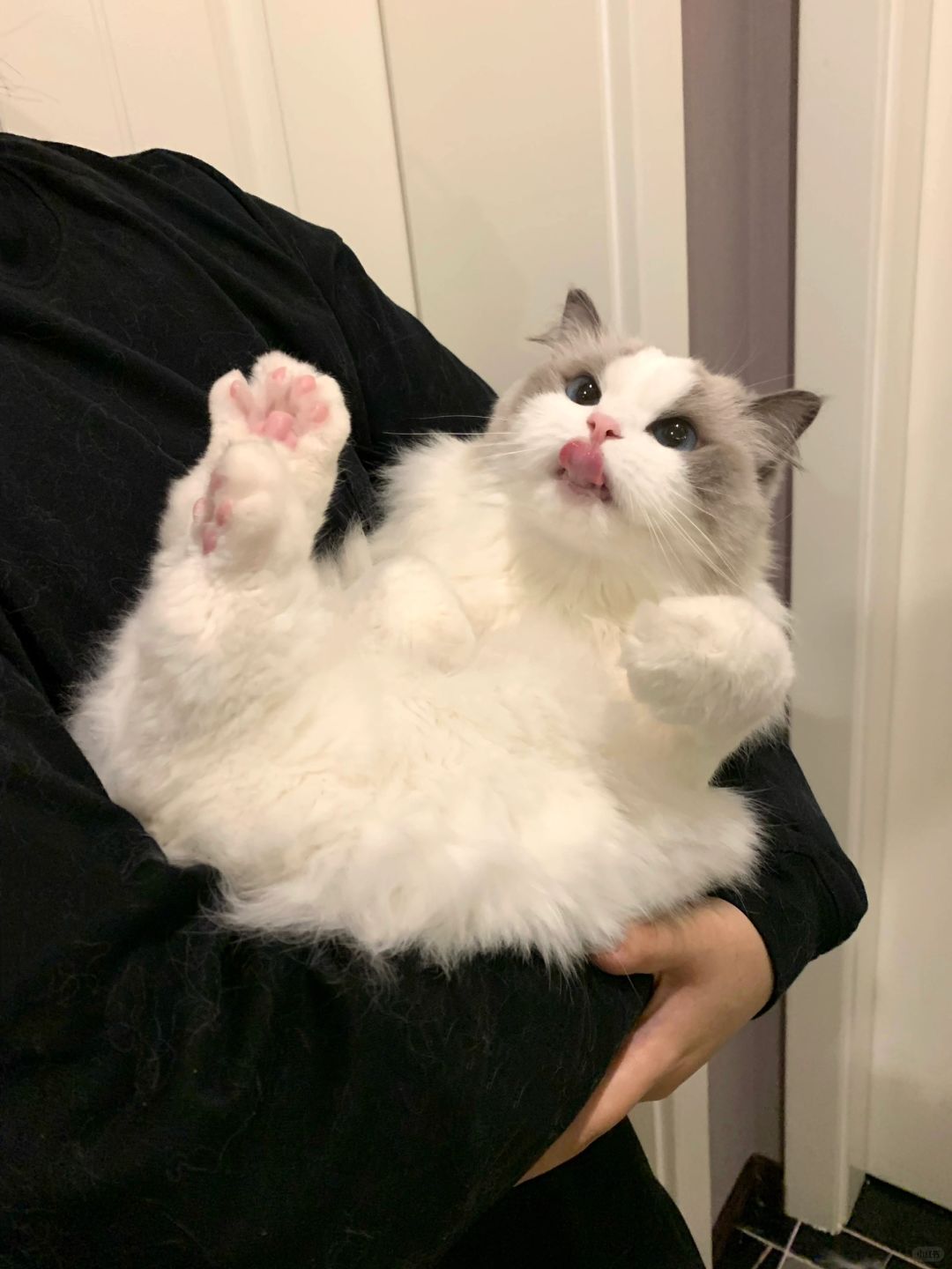 粑粑宝一只手就能抱起来诶 谁懂 为了让猫随时能喝水 搞了个到处都能放的猫咪水吧
